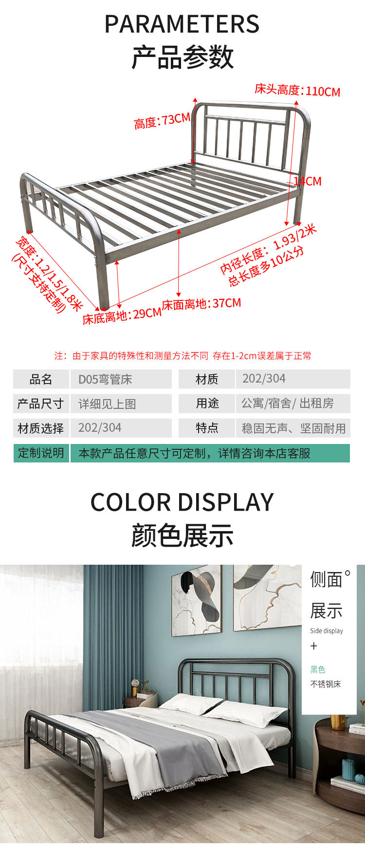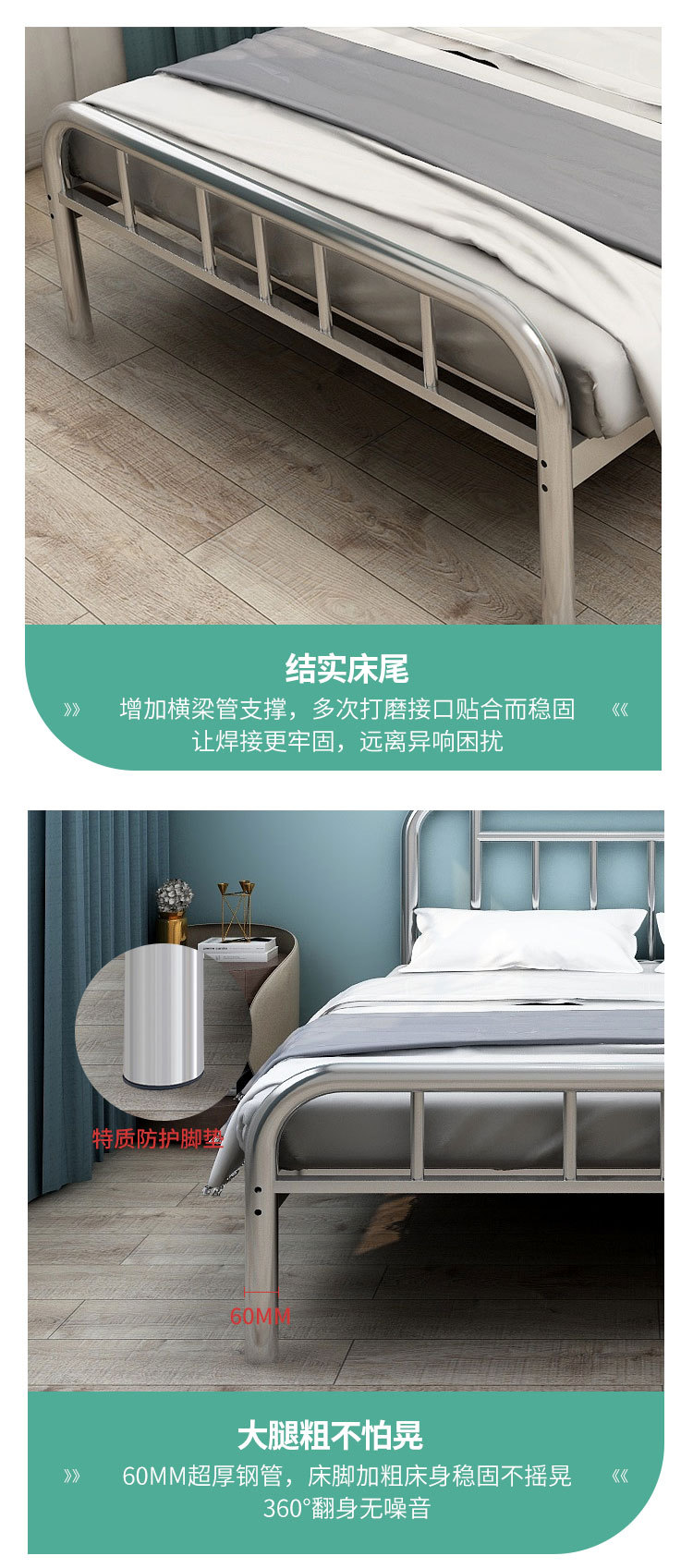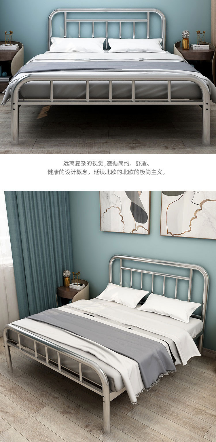 스테인리스 침대 1.8m 임대 아파트 침대 주침실 어린이 침대 스테인리스 더블 침대 침대 프레임 수면 인스 스타일