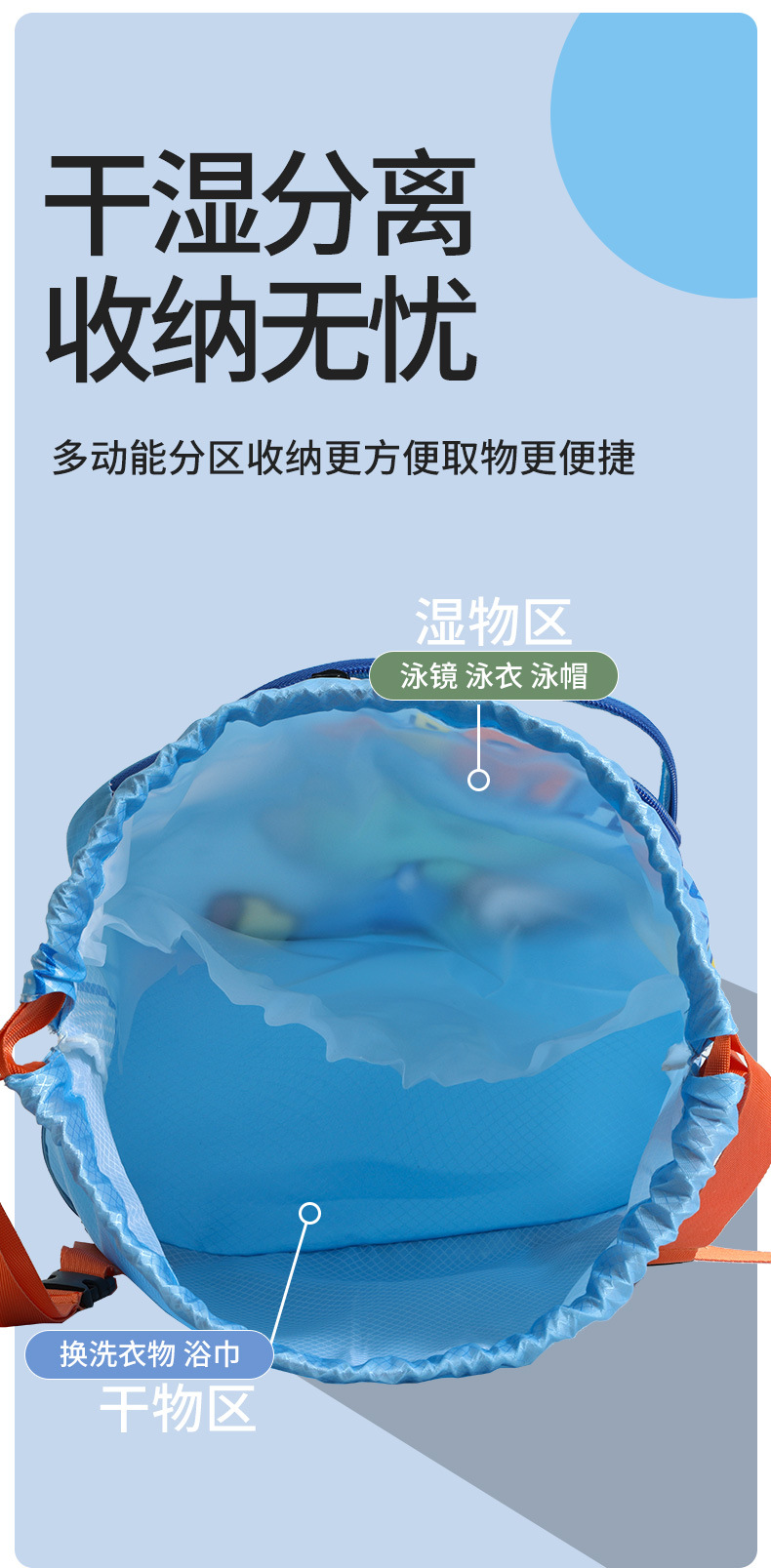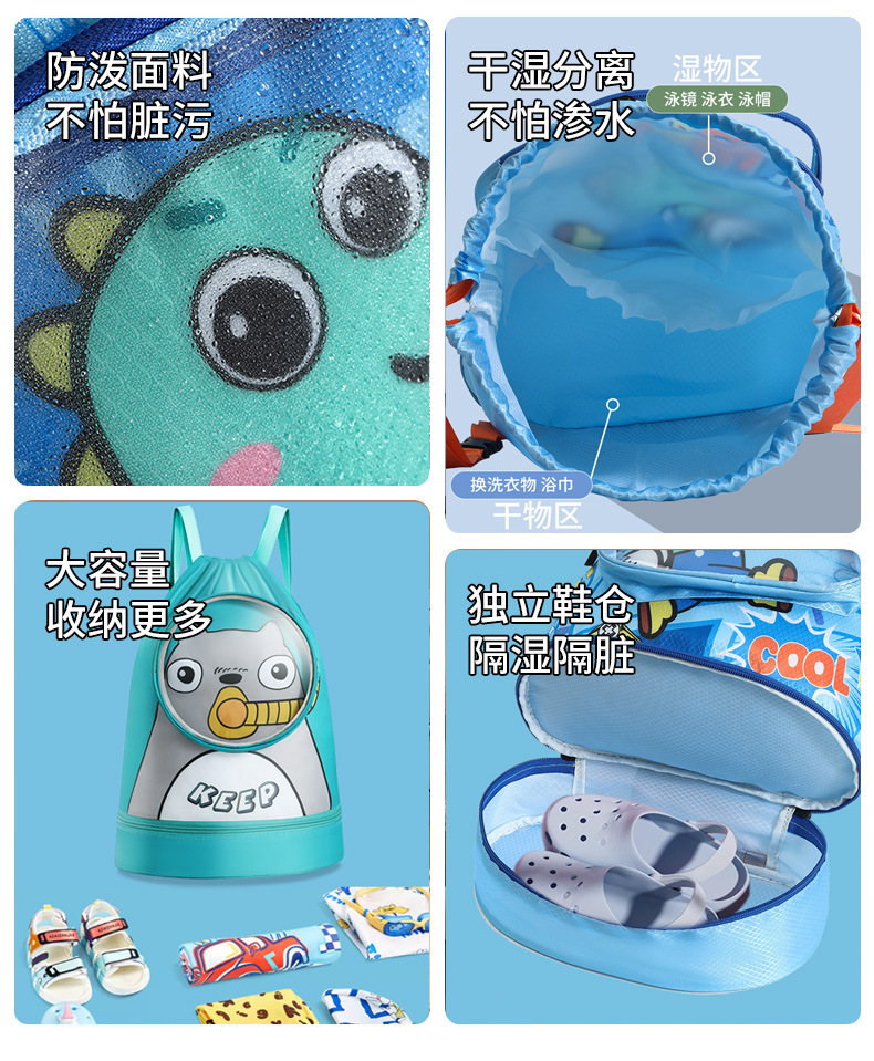 국경 간 어린이 수영 가방 해변 수영장 방수 보관 가방 건조하고 젖은 분리 스포츠 배낭 대용량 배낭스토어 가기