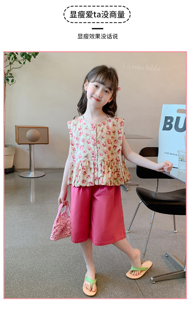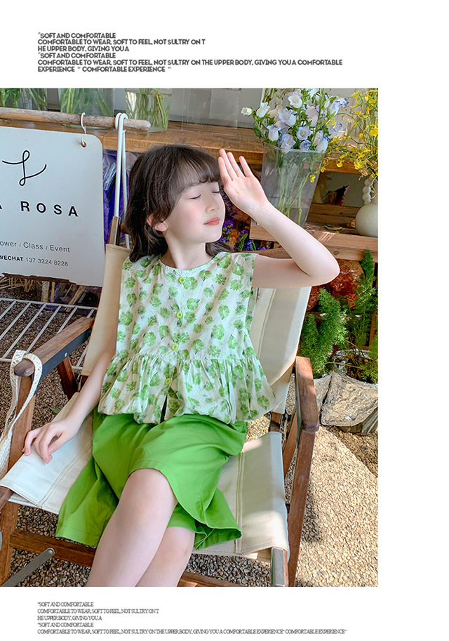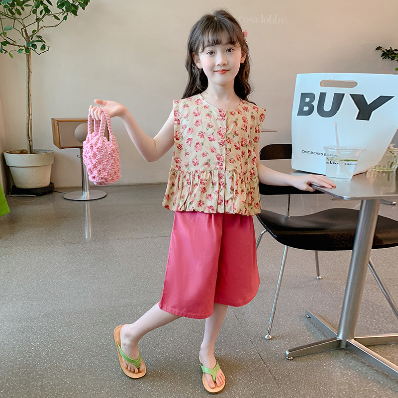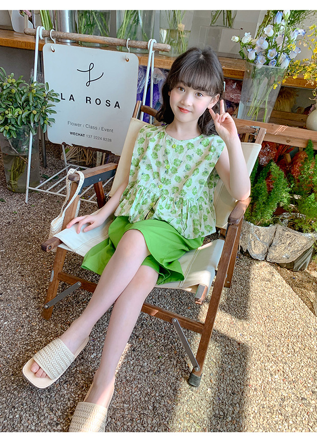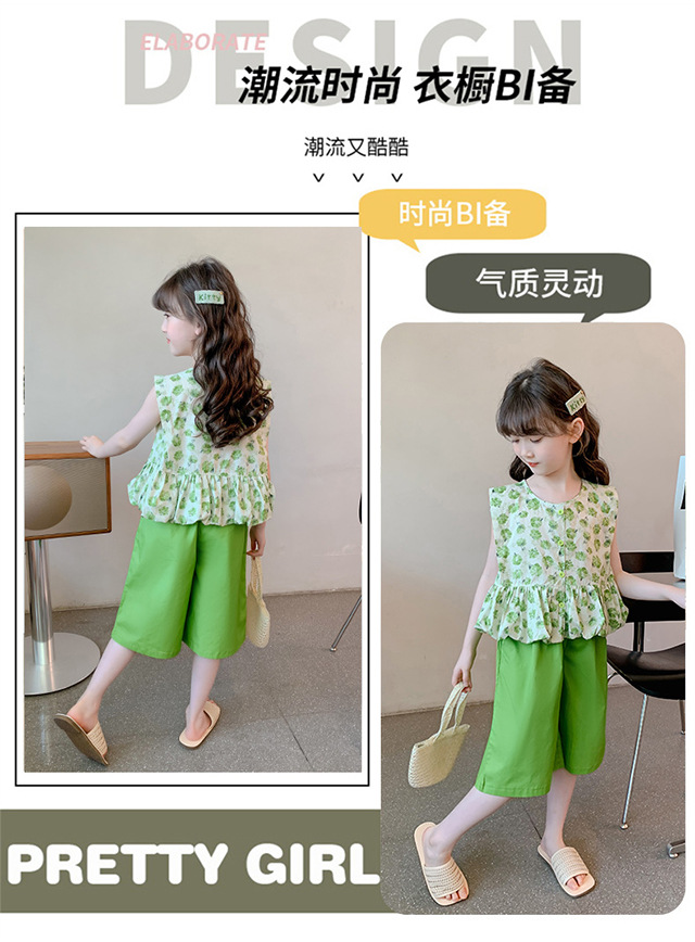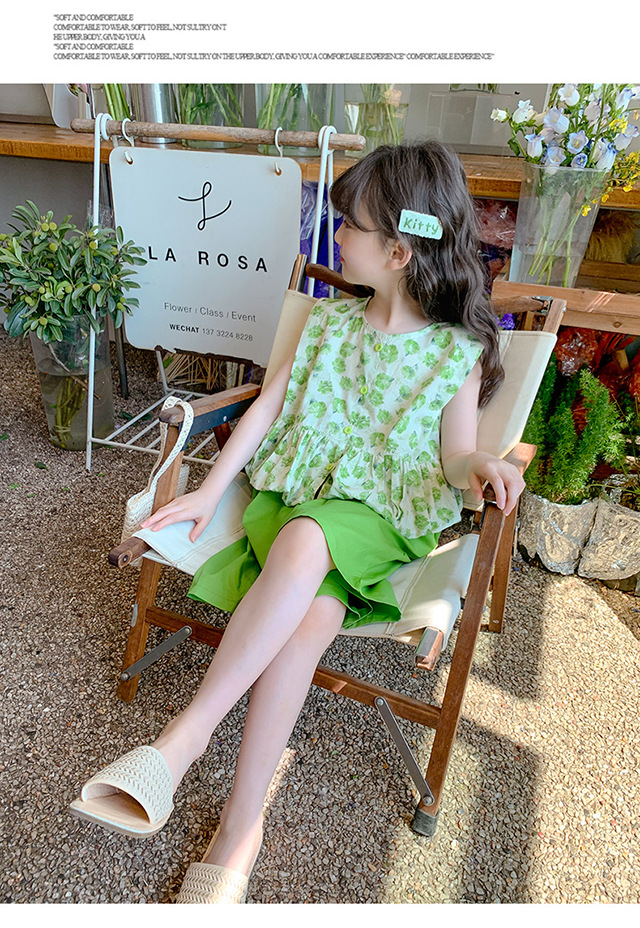 소녀 세트 2024 새로운 서양식 아기 소녀의 여름 꽃 투피스 소녀의 옷 인터넷 연예인 어린이 여름 옷