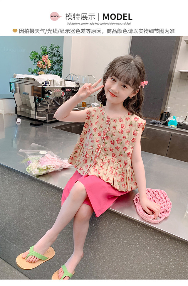 소녀 세트 2024 새로운 서양식 아기 소녀의 여름 꽃 투피스 소녀의 옷 인터넷 연예인 어린이 여름 옷스토어 가기