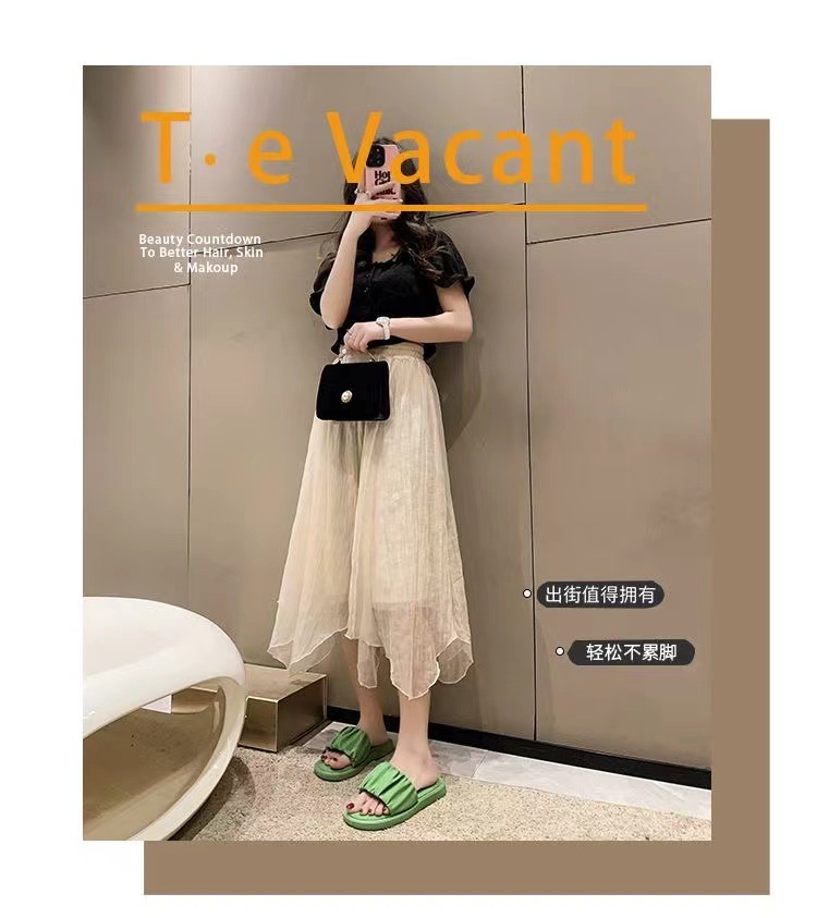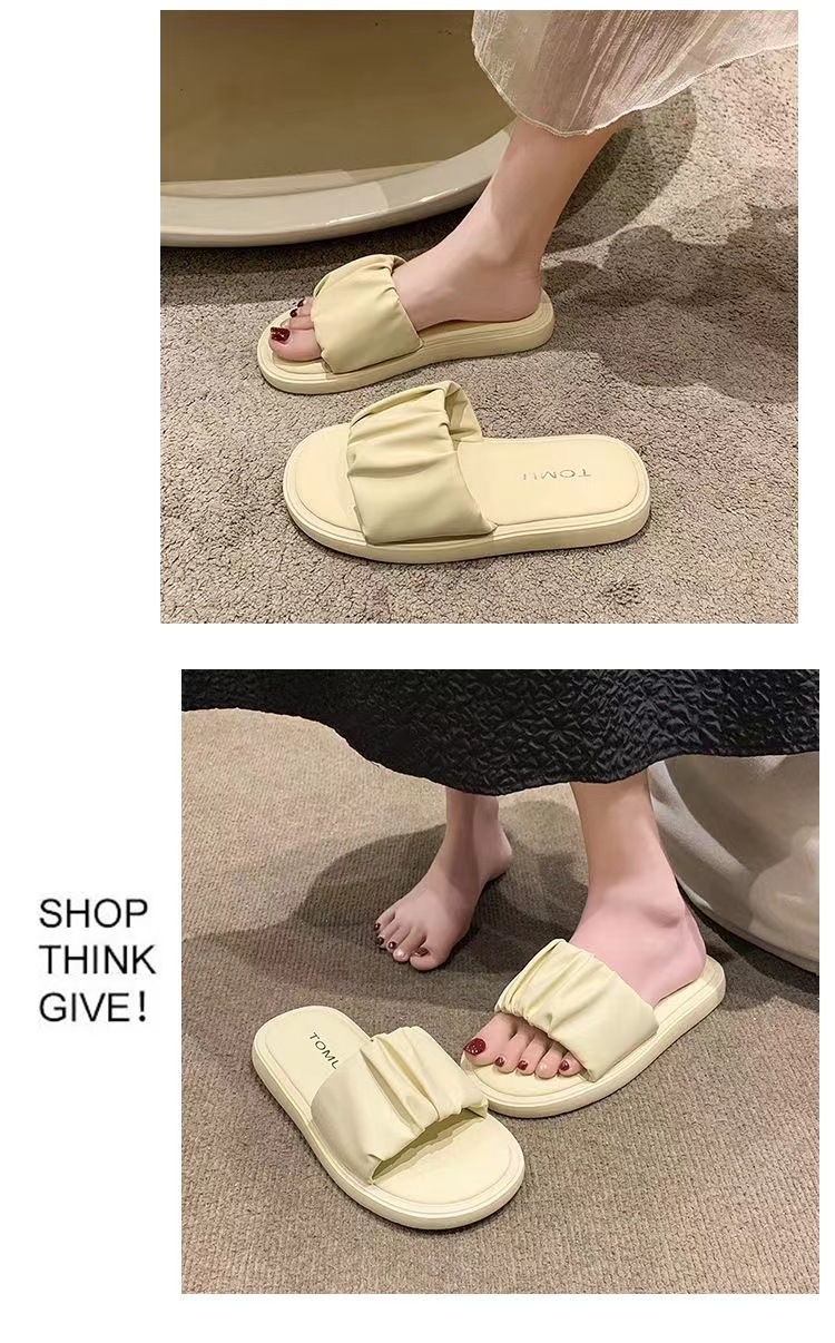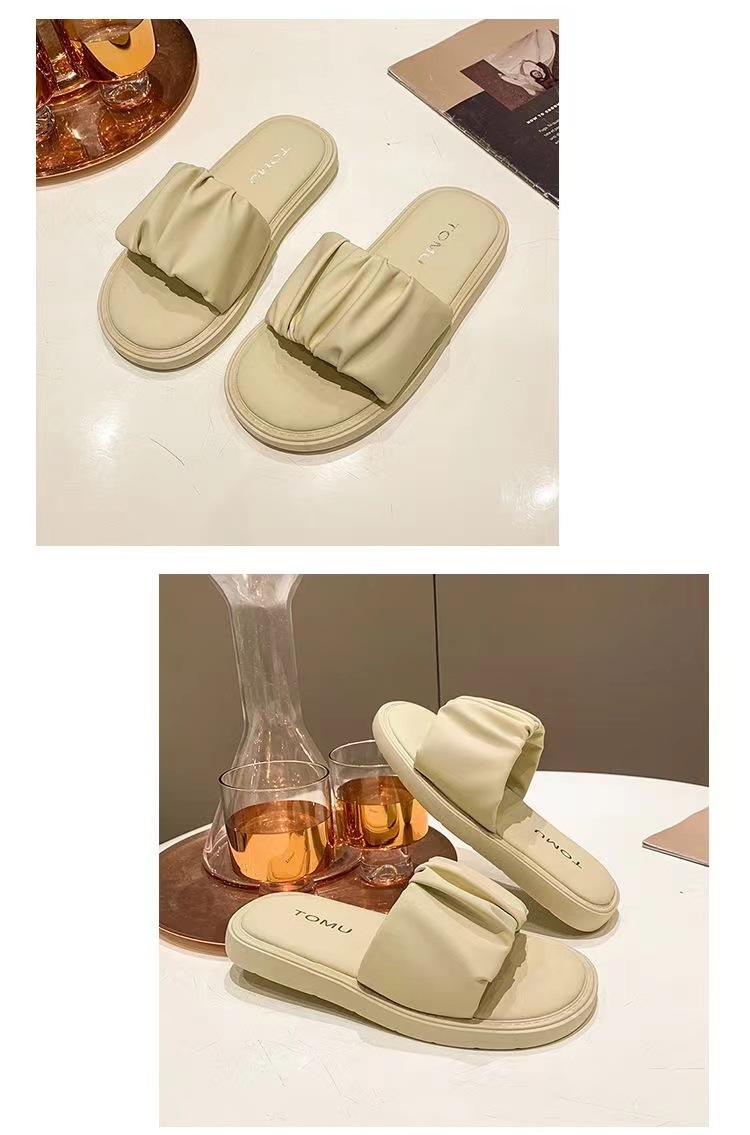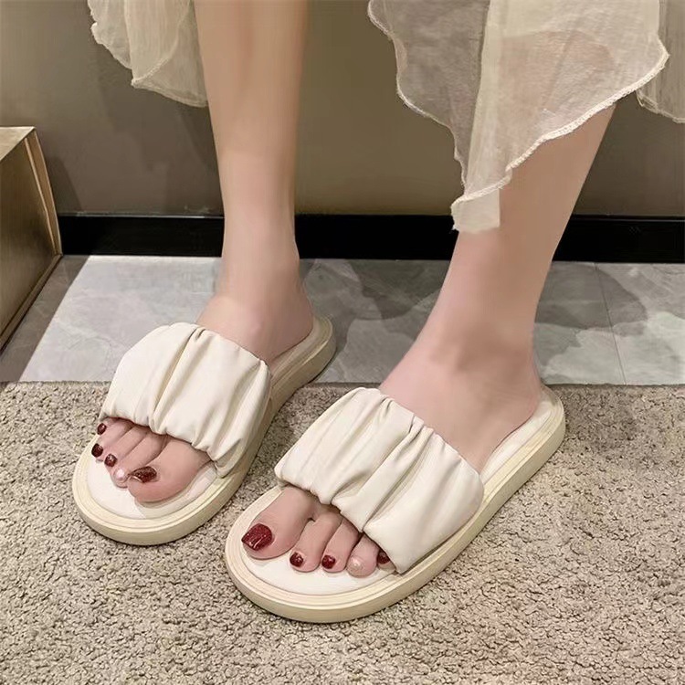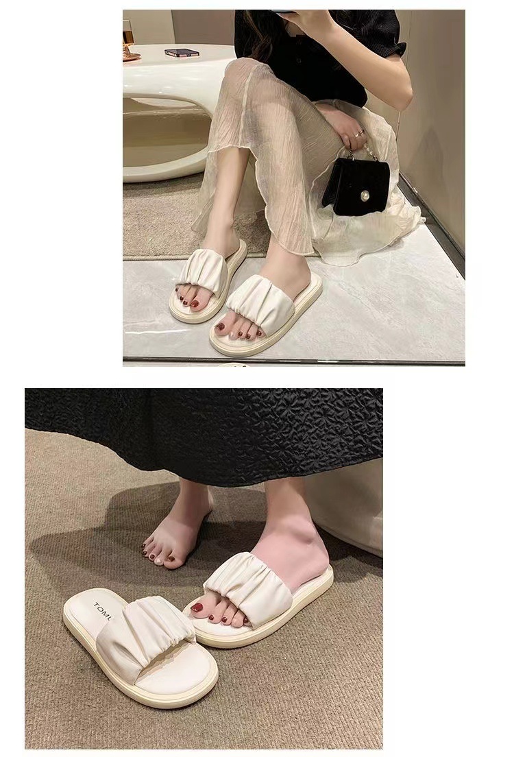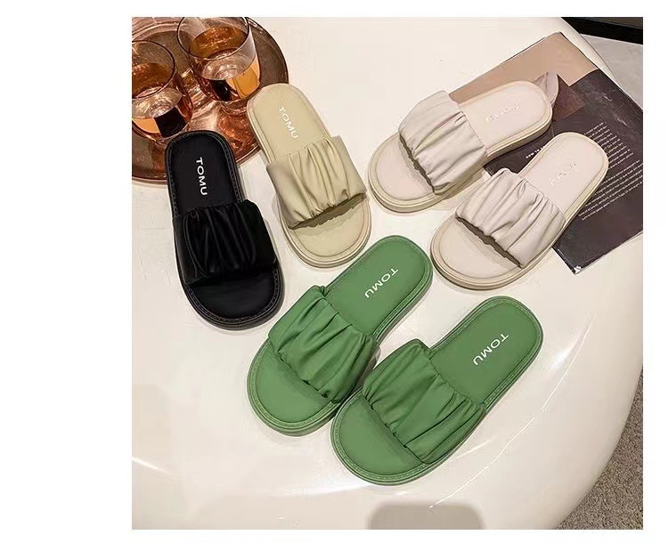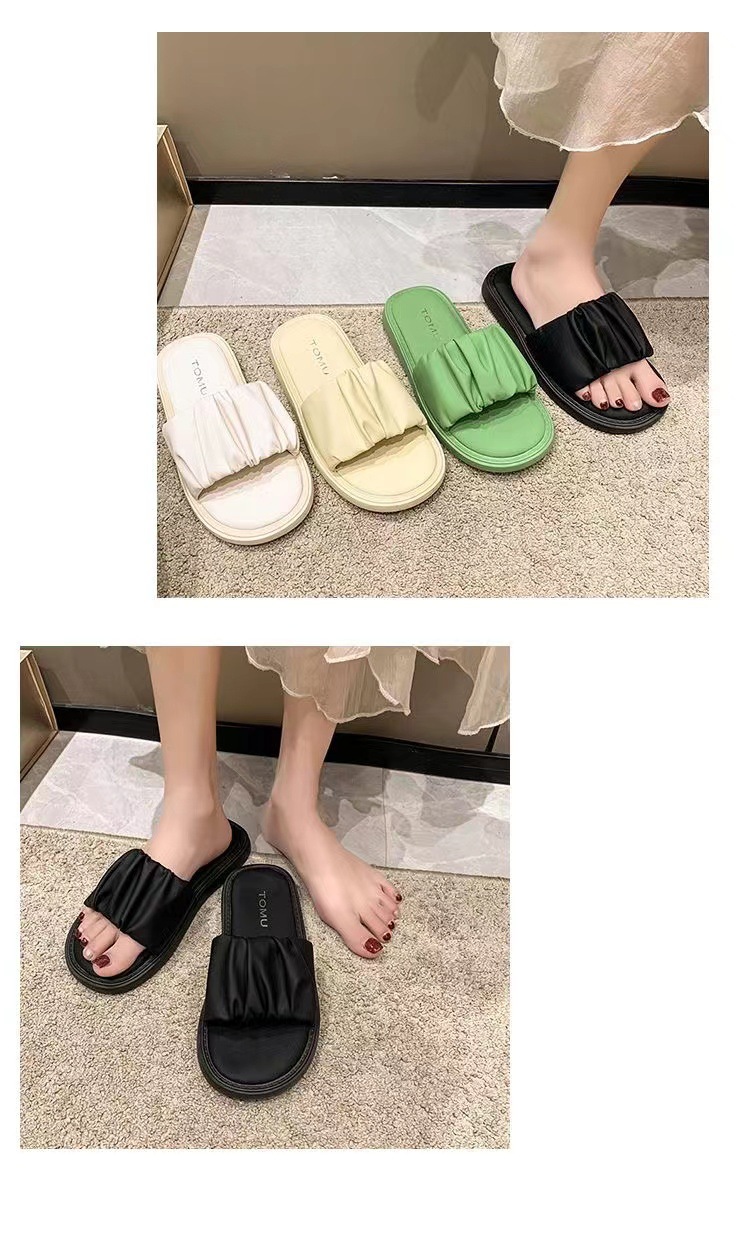 새로운 부드러운 바닥 주름 슬리퍼 여성 외부 여름 폭발 패션 요정 스타일 높은 색상 가치 비치 샌들