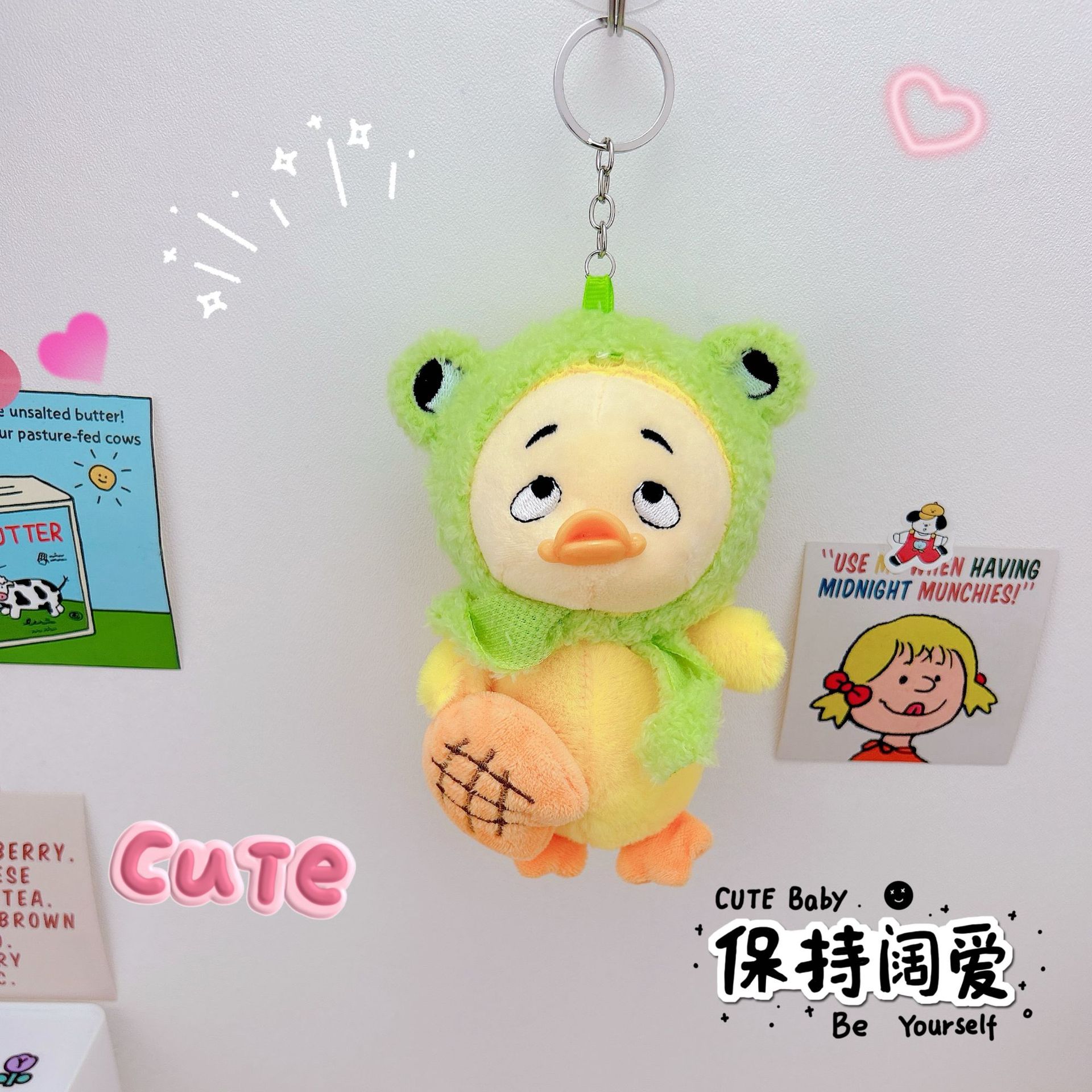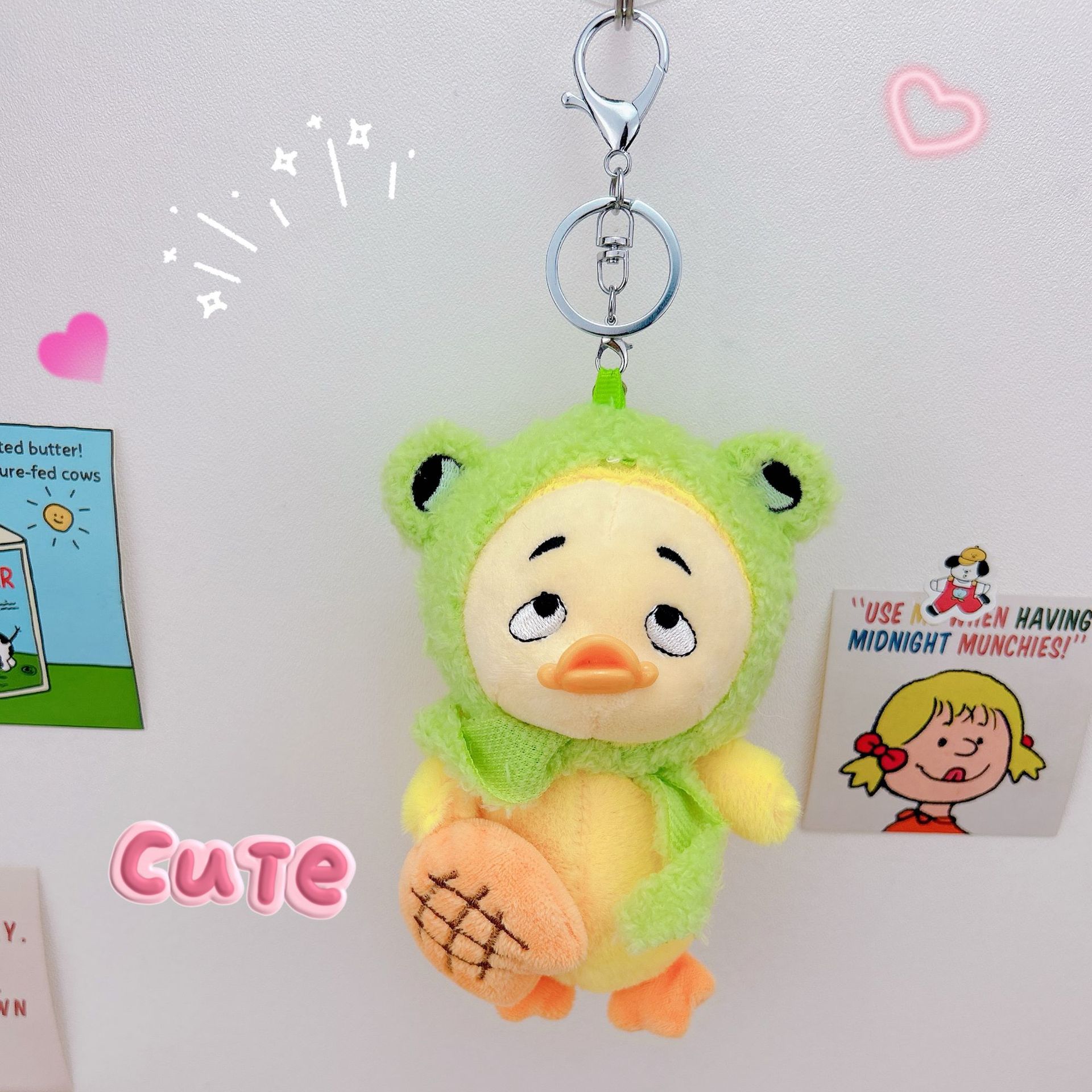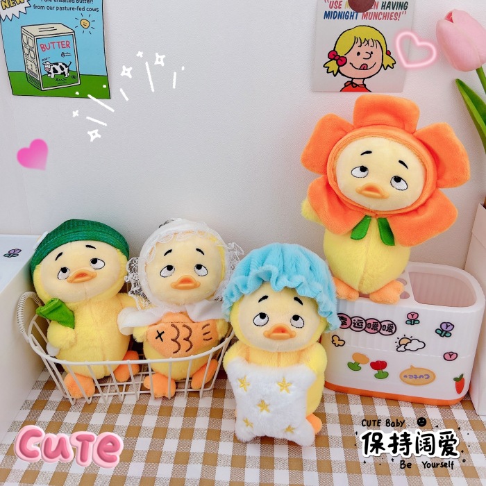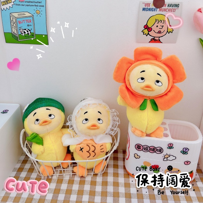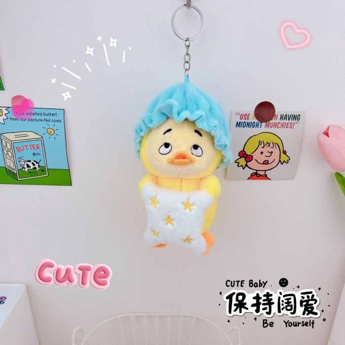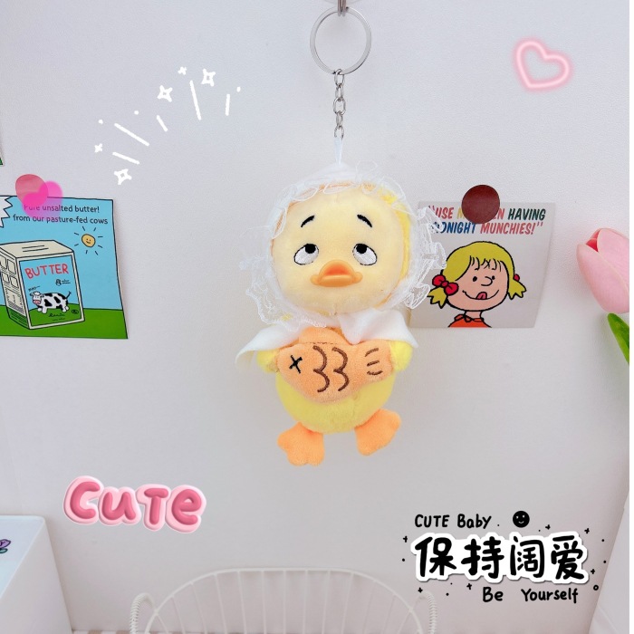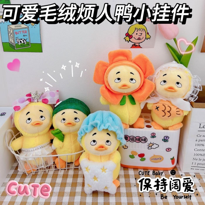 귀여운 성가신 오리 열쇠 고리 펜던트 창조적 인 봉제 인형 오리 새끼 커플 학교 가방 펜던트 인형 기계 도매스토어 가기