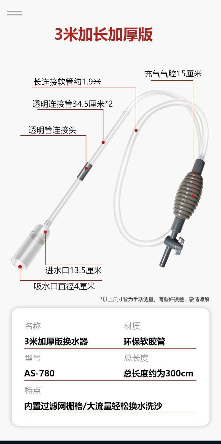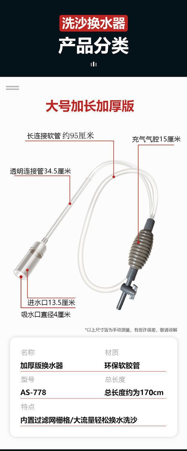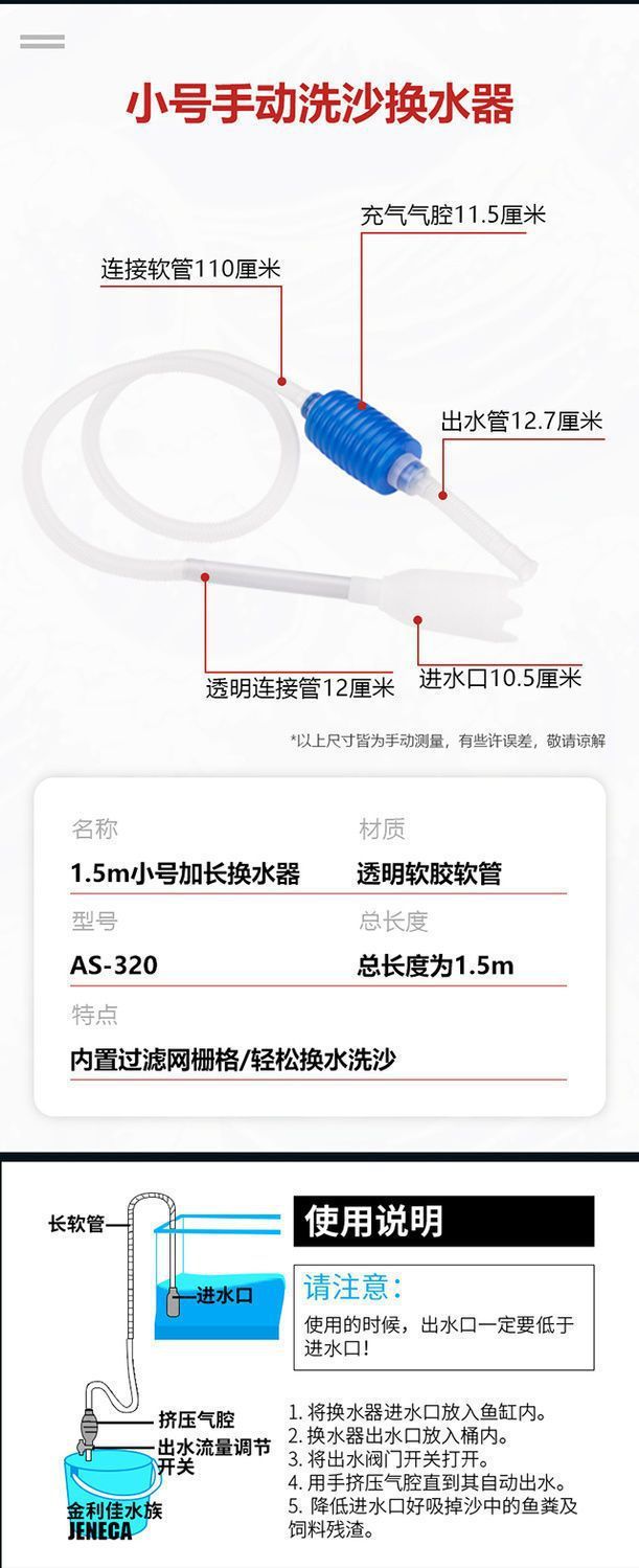 어항 물 교환기 흡입 화장실 물 교환 청소 흡입관 물 흡입 물고기 분뇨 수동 사이펀 탱크 파이프 공장 도매스토어 가기