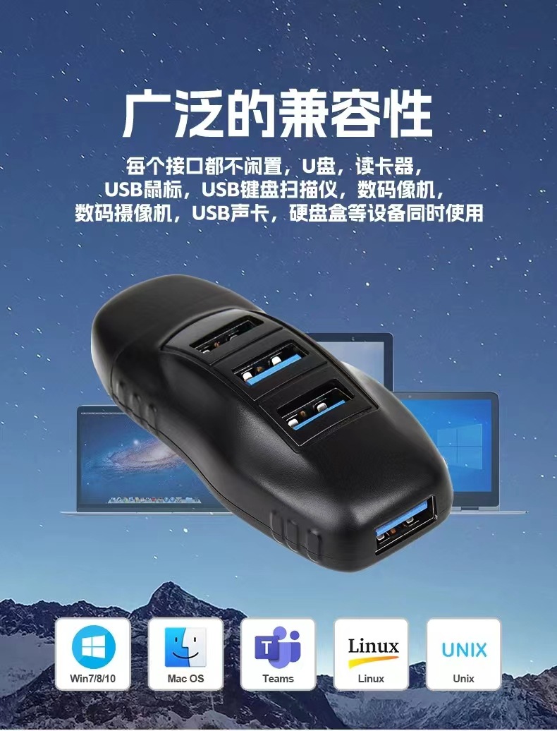 국경 전용 USB3.0 4 포트 허브 익스텐더 멀티 인터페이스 휴대용 USB 컴퓨터 도킹 스테이션