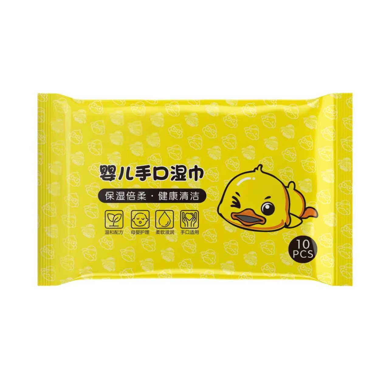재고 작은 꿀벌 아기 손 물티슈 도매 배달 작은 노란색 오리 물티슈 저장 상자 휴대용 청소 물티슈 제조 업체