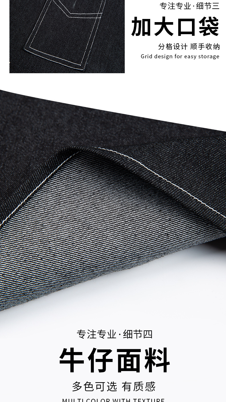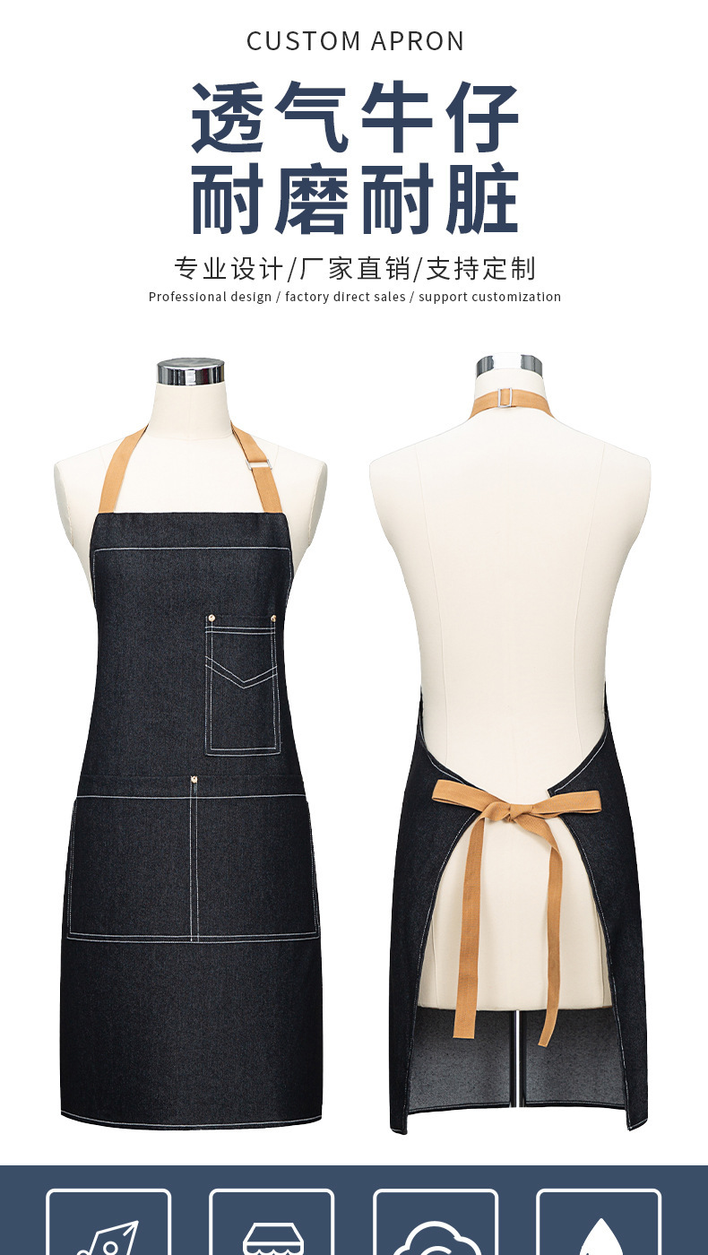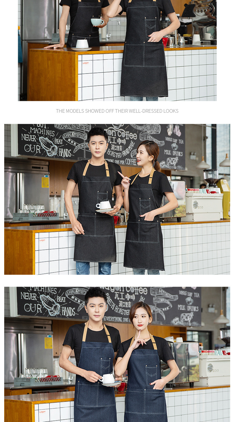 데님 앞치마 케이터링 특별 자수 로고 우유 차 커피 숍 레스토랑 웨이터 허리 맞춤 작업복