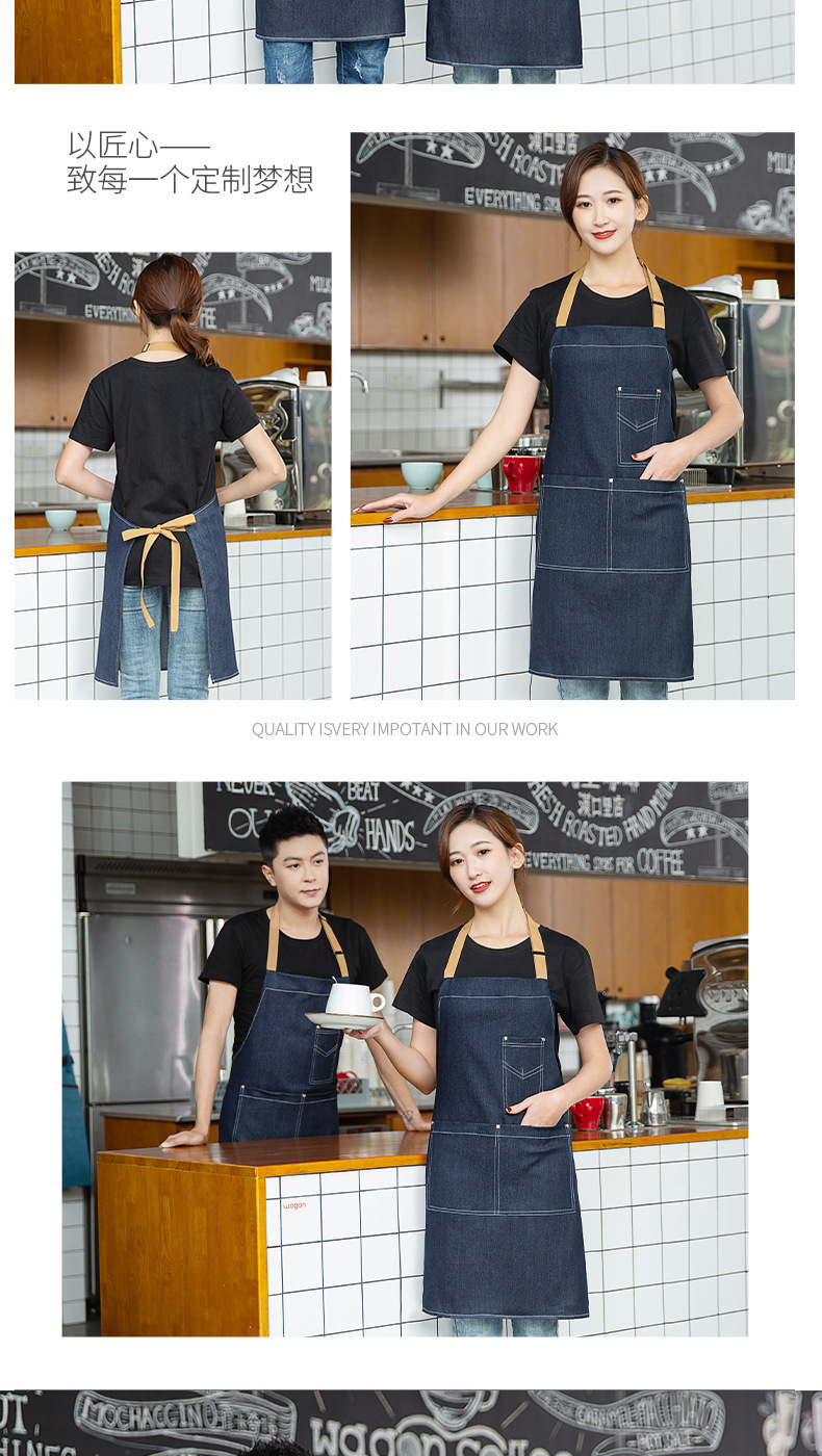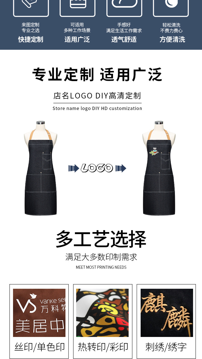 데님 앞치마 케이터링 특별 자수 로고 우유 차 커피 숍 레스토랑 웨이터 허리 맞춤 작업복스토어 가기