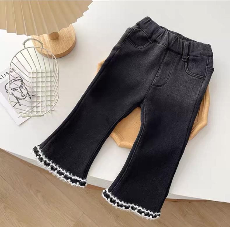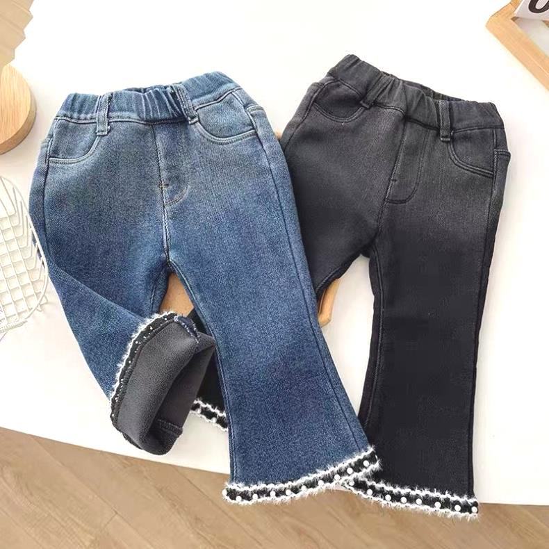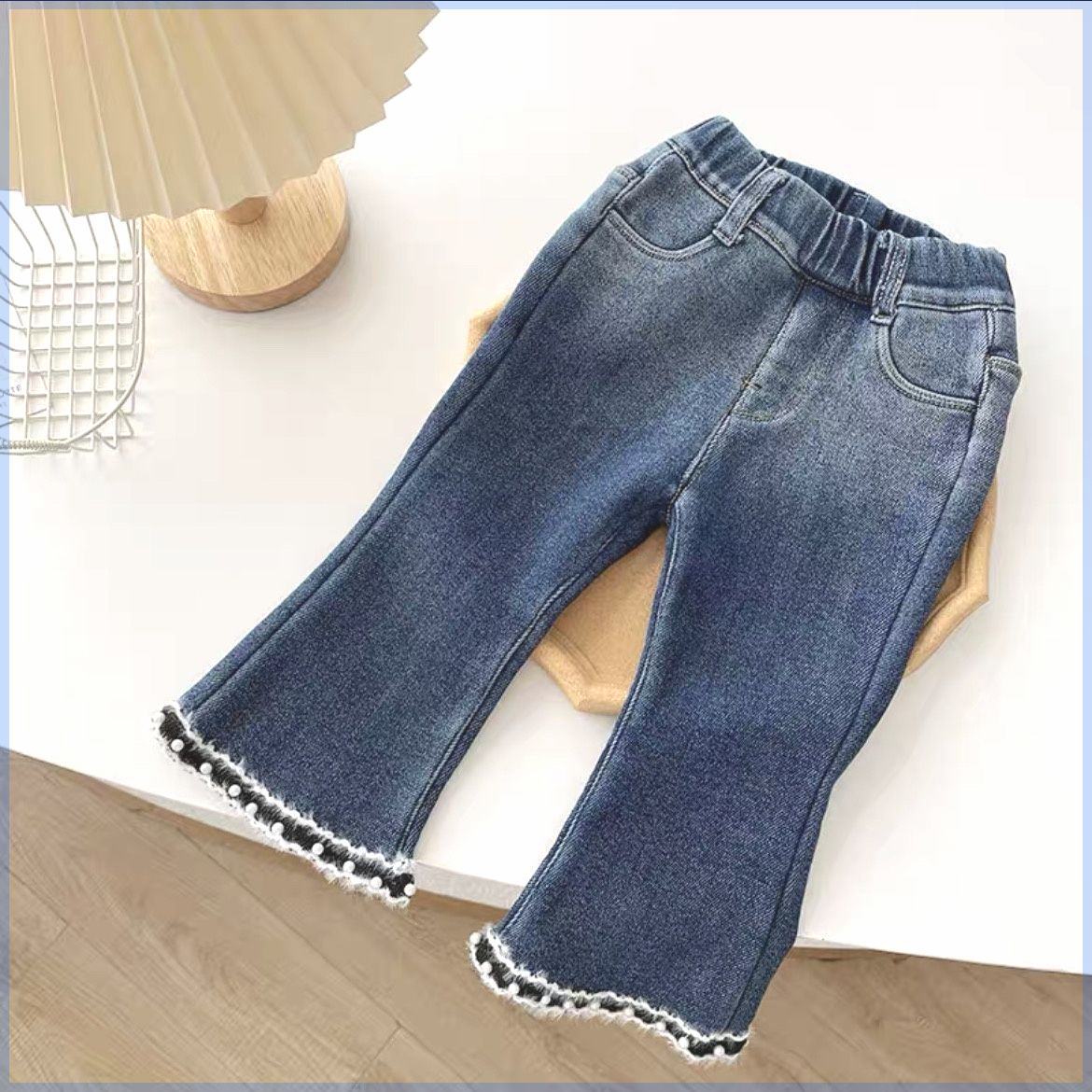 소녀 기모 데님 플레어 팬츠 새로운 어린이 아기 스트레치 바지 두꺼운 소녀 유행 슬림 핏 청바지