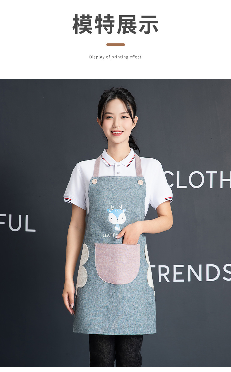 패션 앞치마 홈 주방 방수 및 내유성 귀여운 일본식 여성 패션 인쇄 자수 로고 작업 옷스토어 가기