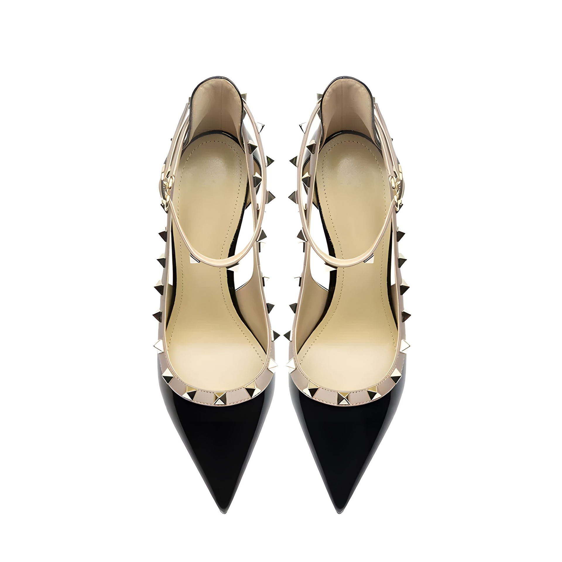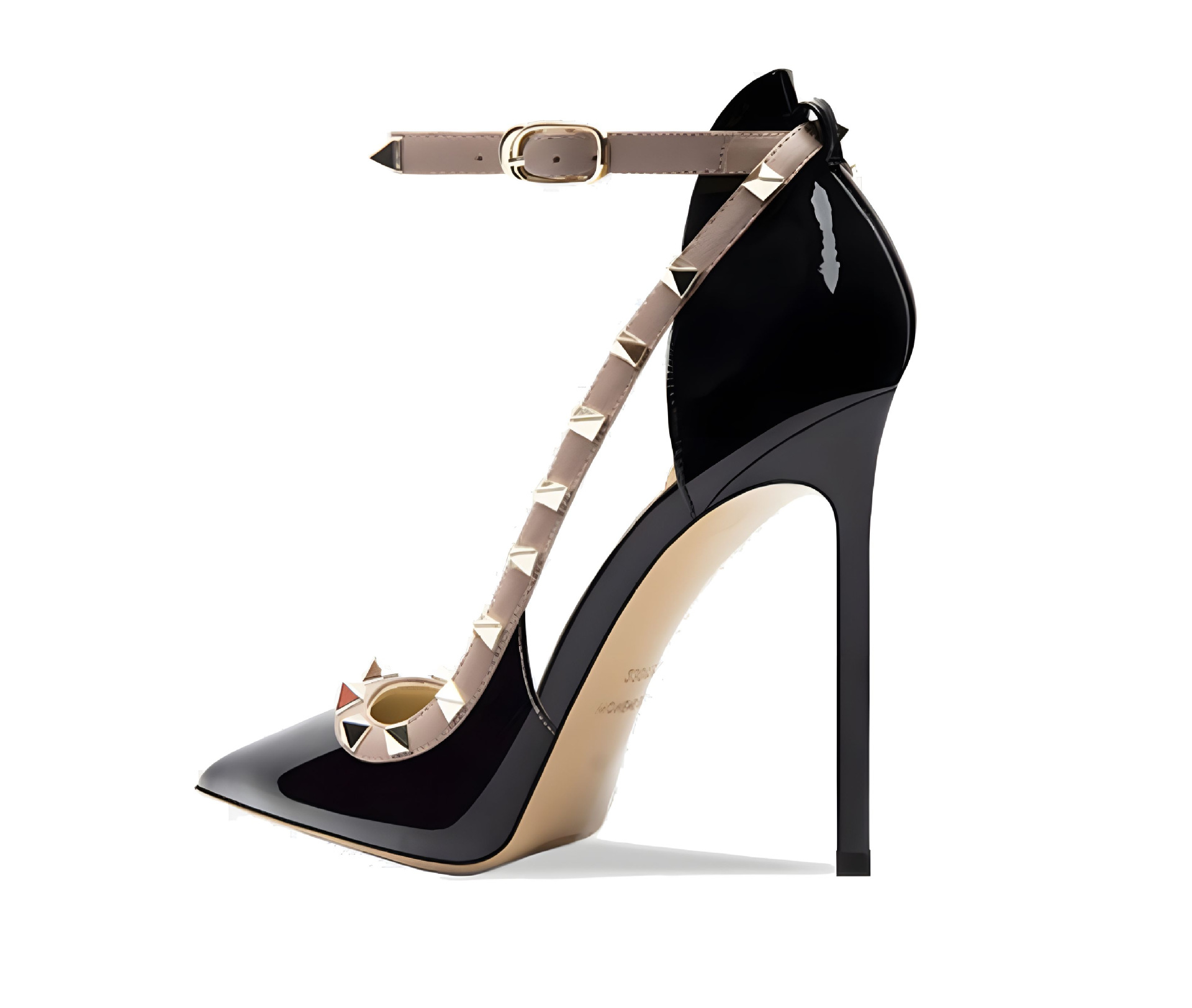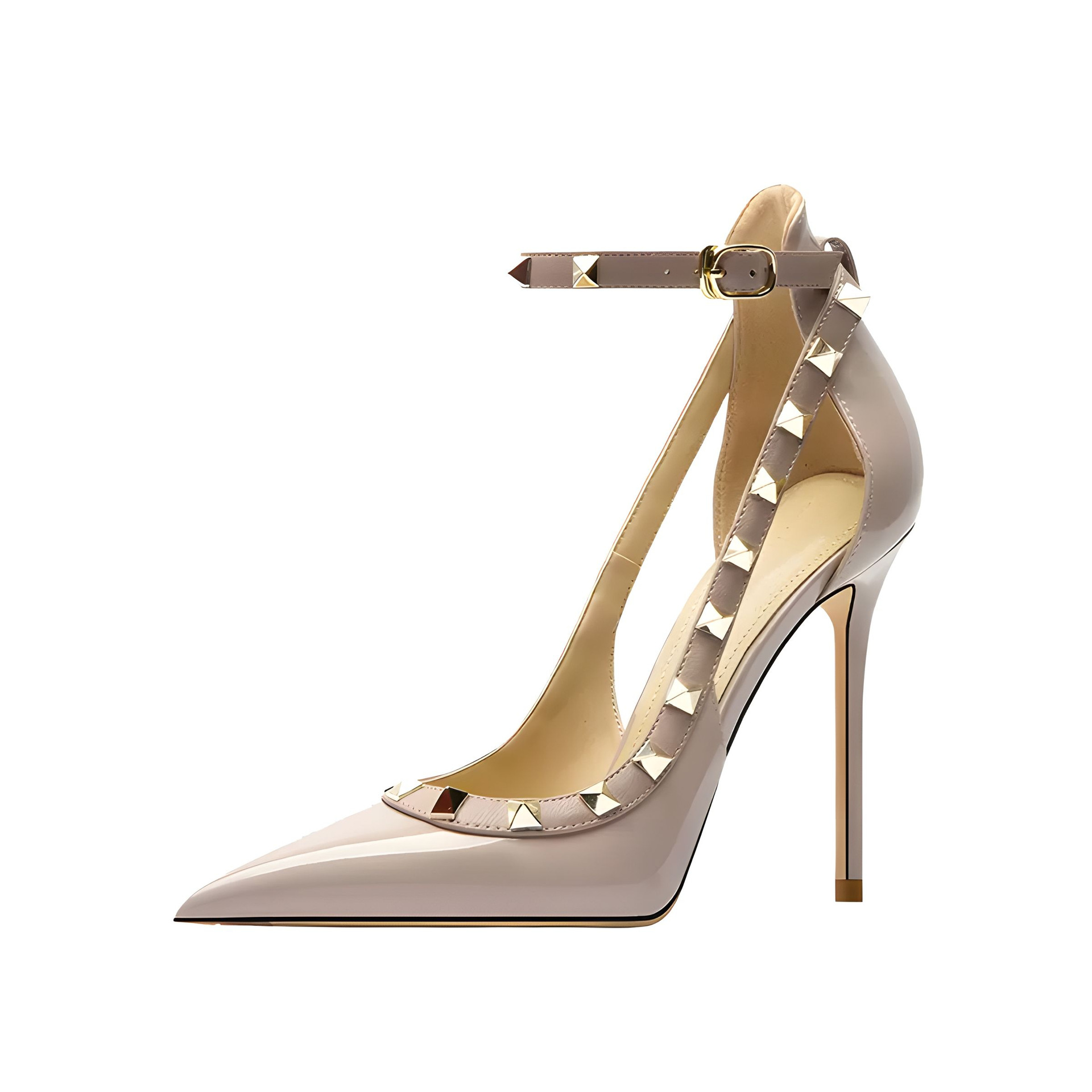 2024 크로스 보더 스터드 발목 스트랩 버클 특허 가죽 초정밀 하이힐 플러스 사이즈 35-44 여성 신발