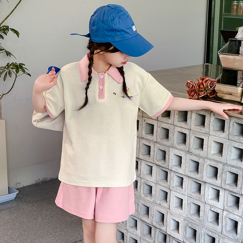 여자 여름 세트 2024 새 한국 폴로 반팔 반바지 가장 세련된 캐주얼 투피스 세트스토어 가기