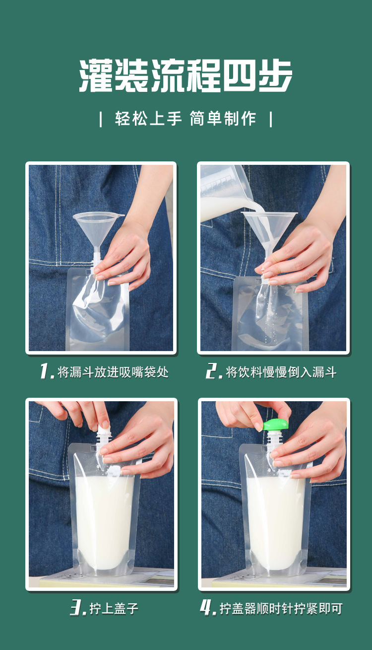 투명한 흡입 노즐 백 큰 직경 누출 방지 식품 등급 콘서트 식수 액체 가방 테이크 아웃 가방 콩 우유 가방 식품 가방