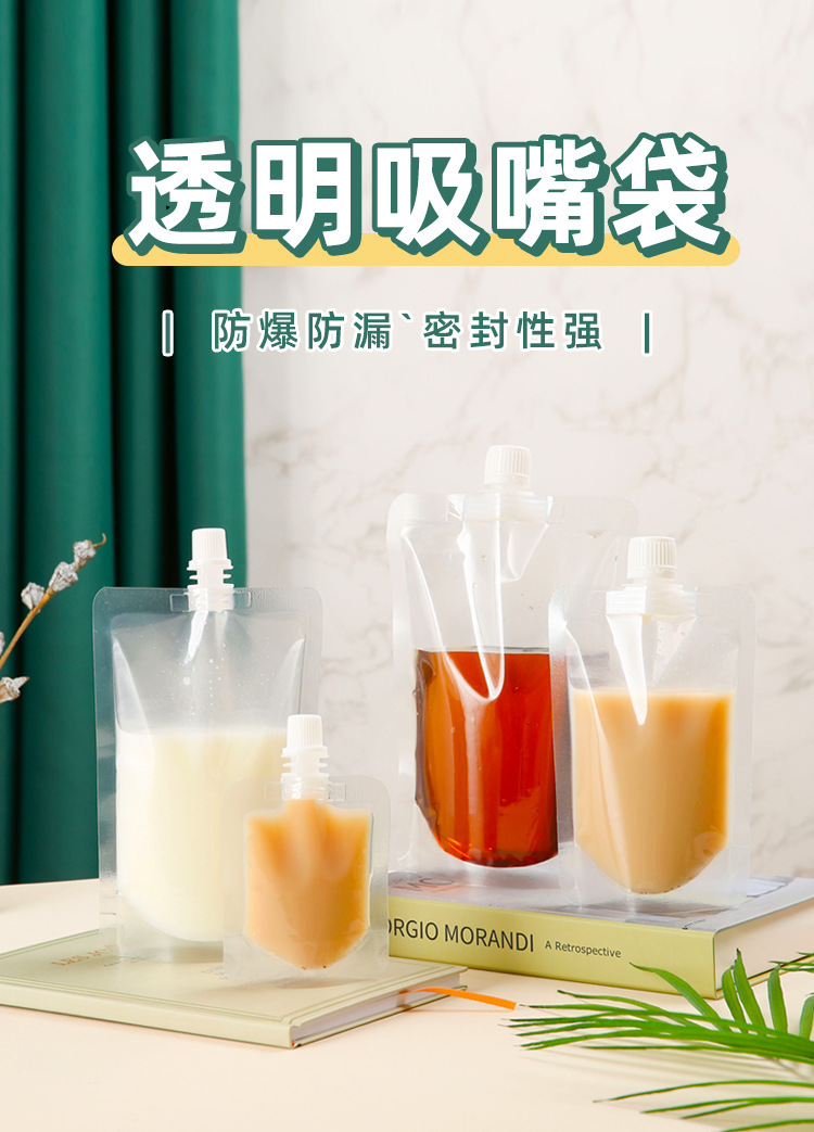투명한 흡입 노즐 백 큰 직경 누출 방지 식품 등급 콘서트 식수 액체 가방 테이크 아웃 가방 콩 우유 가방 식품 가방스토어 가기