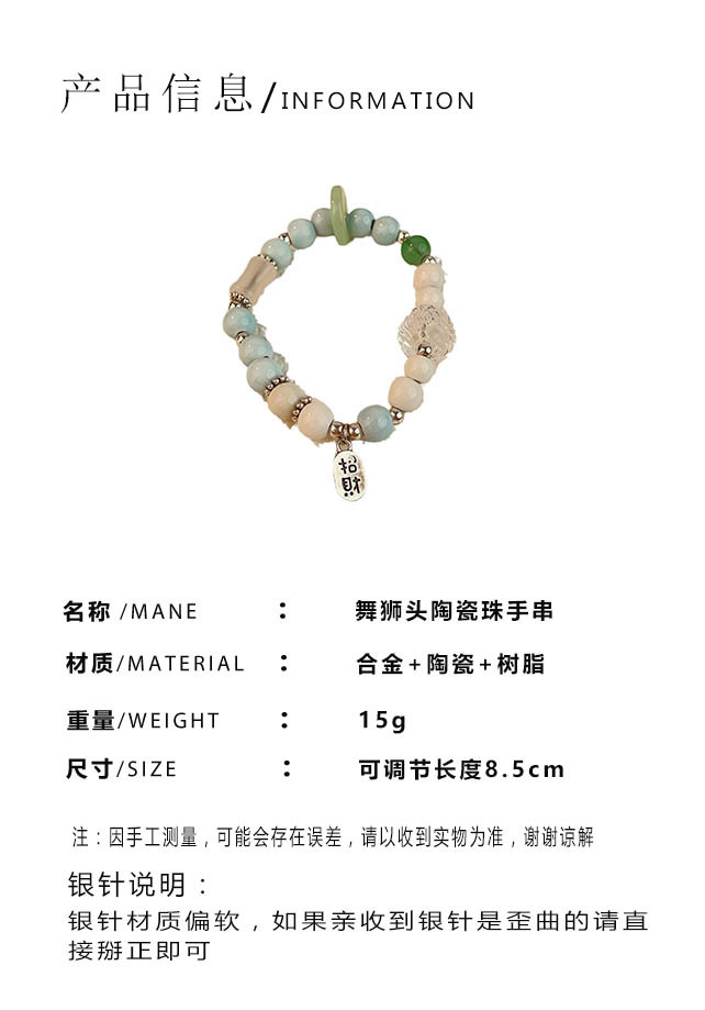 • 녹색 댄스 사자 머리 세라믹 구슬 팔찌 S0803C
