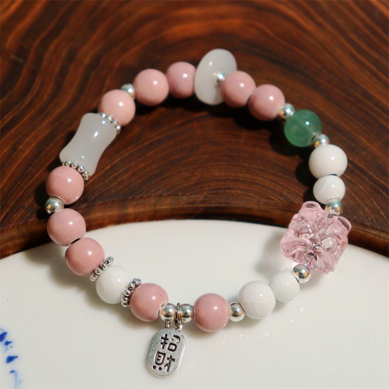 • 핑크 댄스 사자 머리 세라믹 구슬 팔찌 S0803A