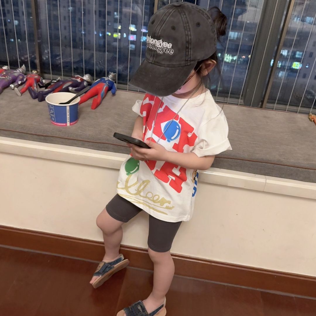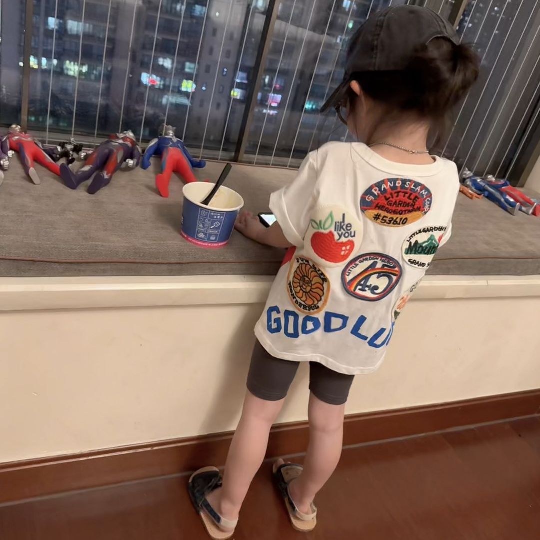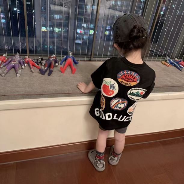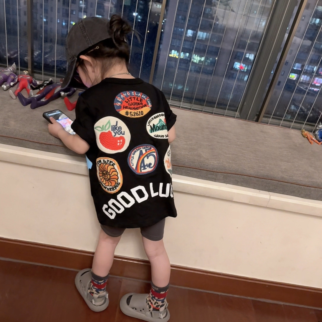 아동복 소년 티셔츠 반팔 새 도착 여름 2024 여름 소년 거리 반소매 어린이 셔츠 자수 사진