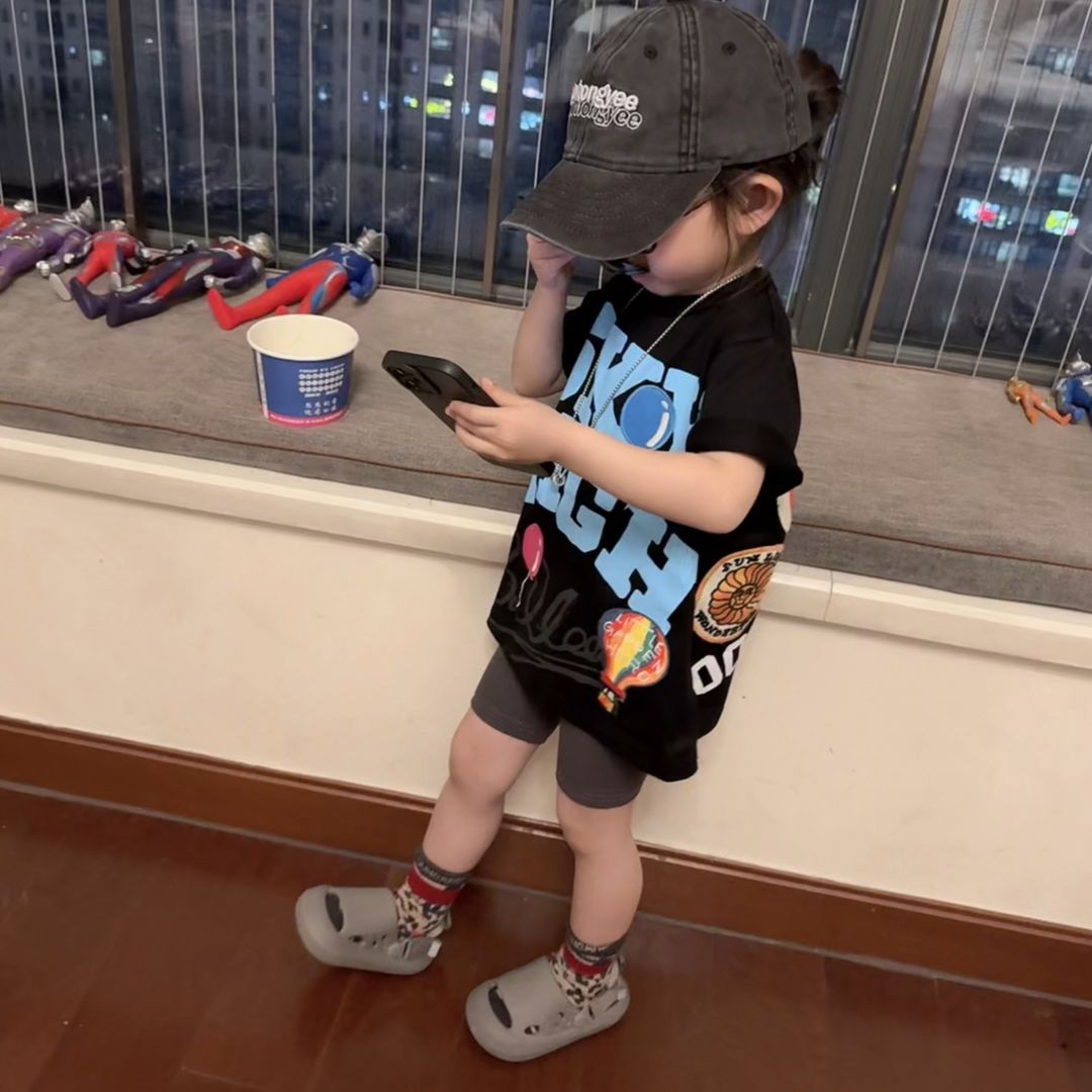 아동복 소년 티셔츠 반팔 새 도착 여름 2024 여름 소년 거리 반소매 어린이 셔츠 자수 사진스토어 가기