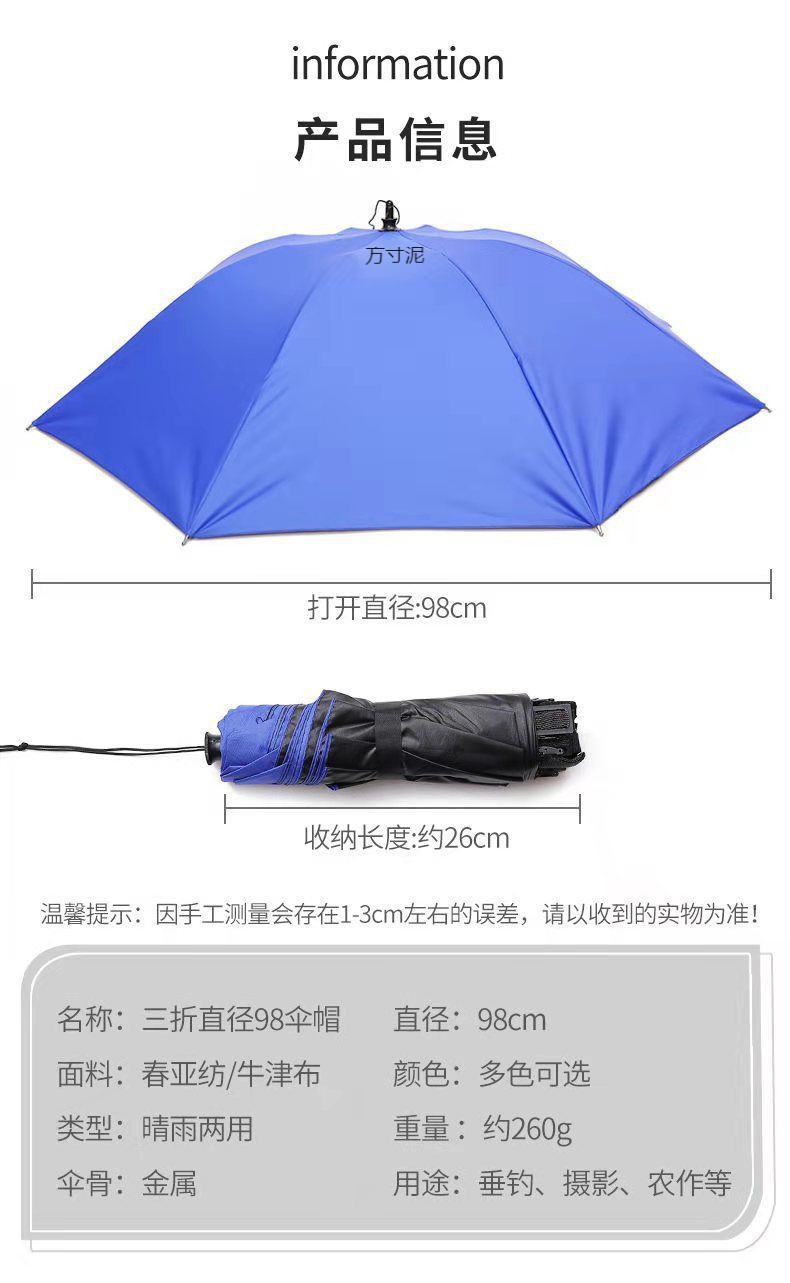 머리 장착 우산 모자 써니 우산 대형 접는 3 배 모자 우산 야외 햇빛 반대로 자외선 낚시 차 따기 우산 모자