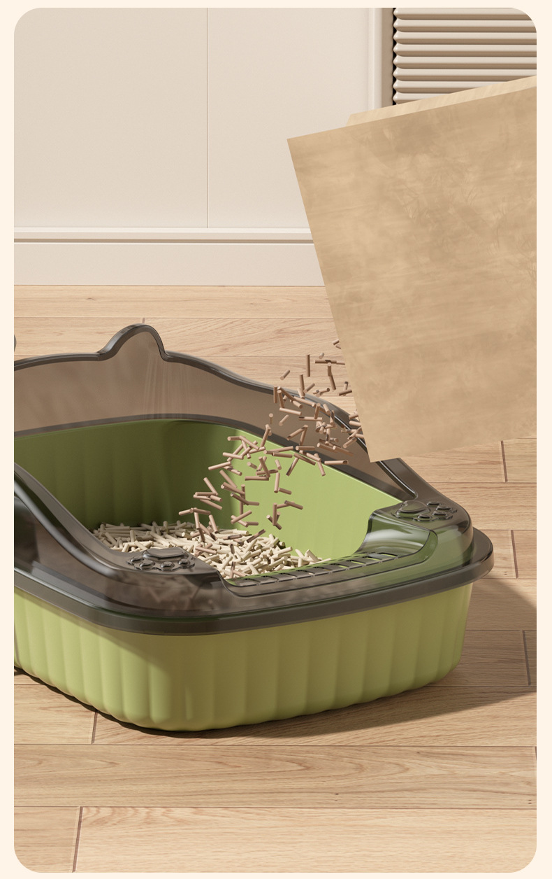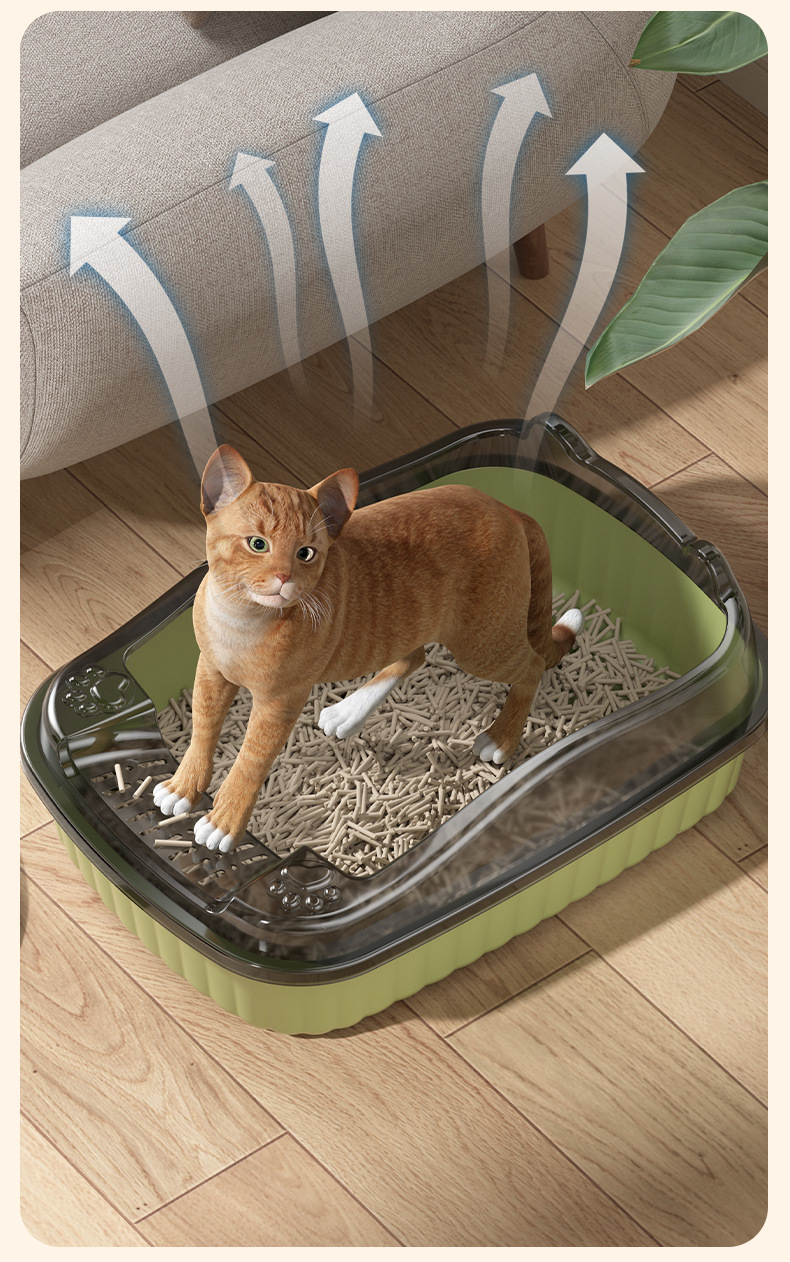 고양이 쓰레기 상자 반 폐쇄 오픈 스플래쉬 방지 고양이 쓰레기 상자 대형 고양이 화장실 스몰 사이즈 새끼 고양이 변기 탈취