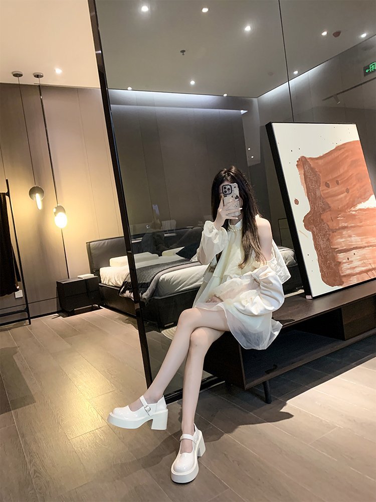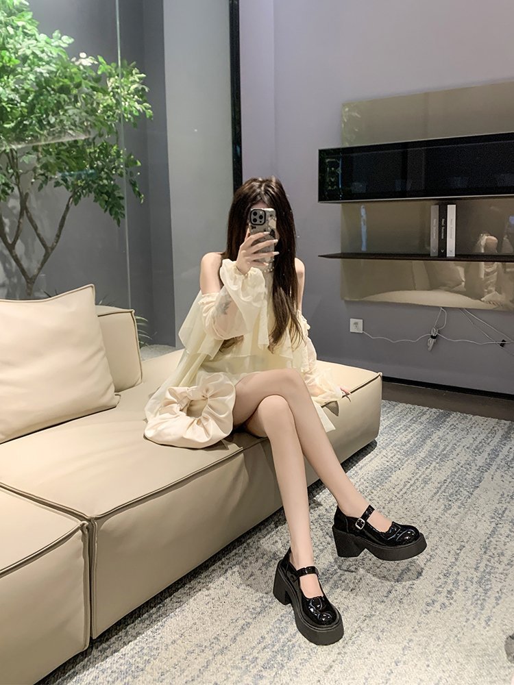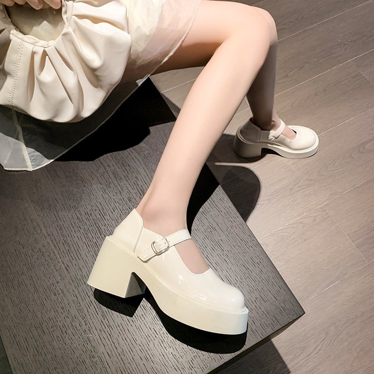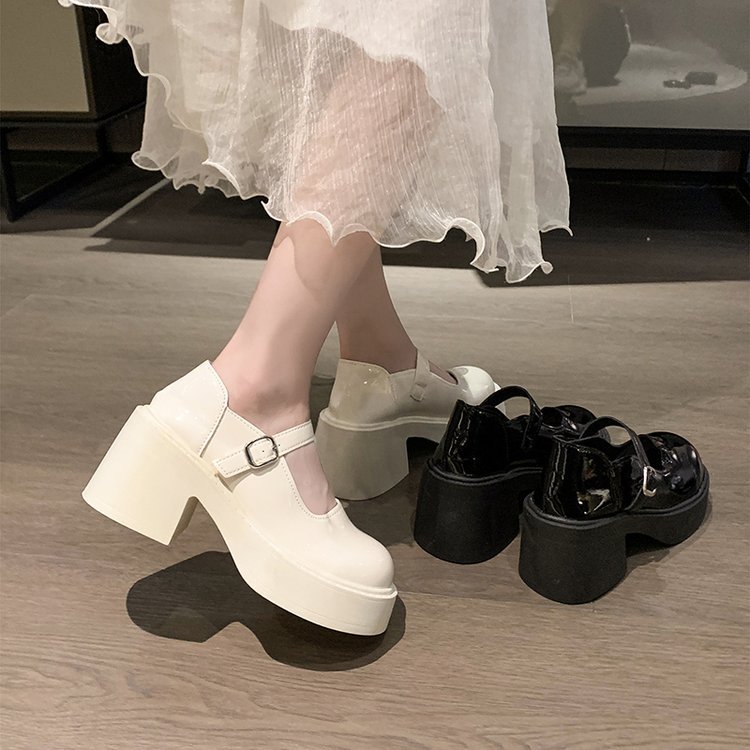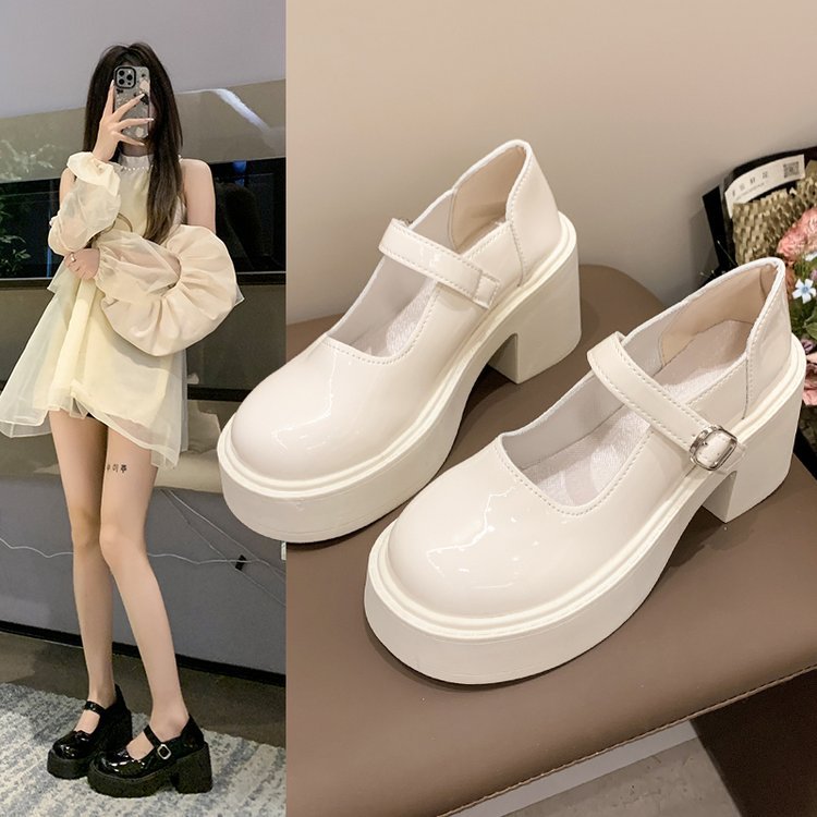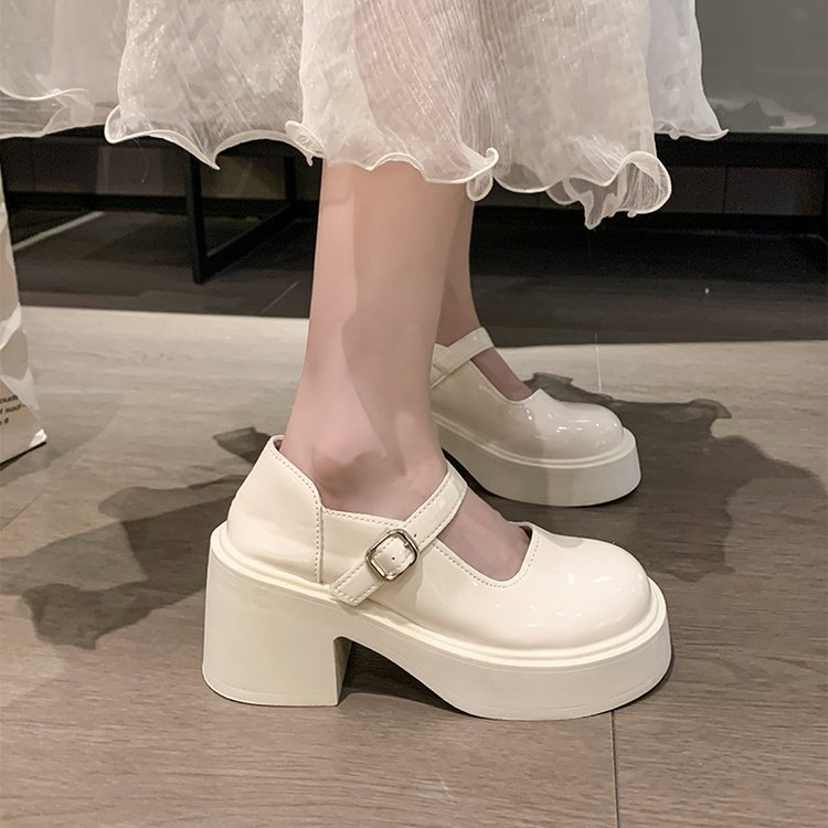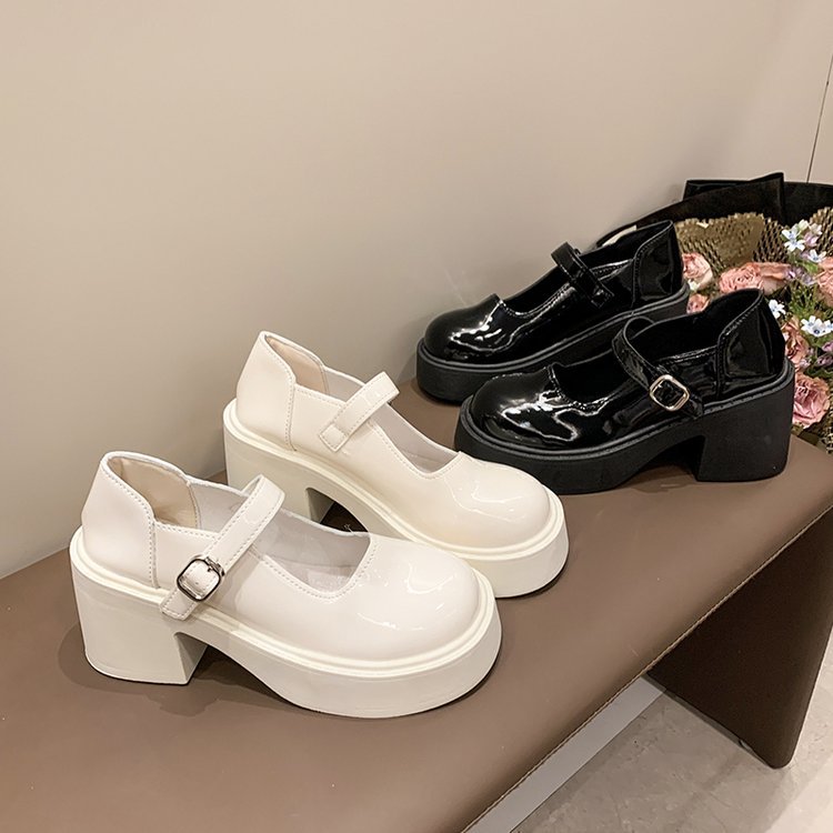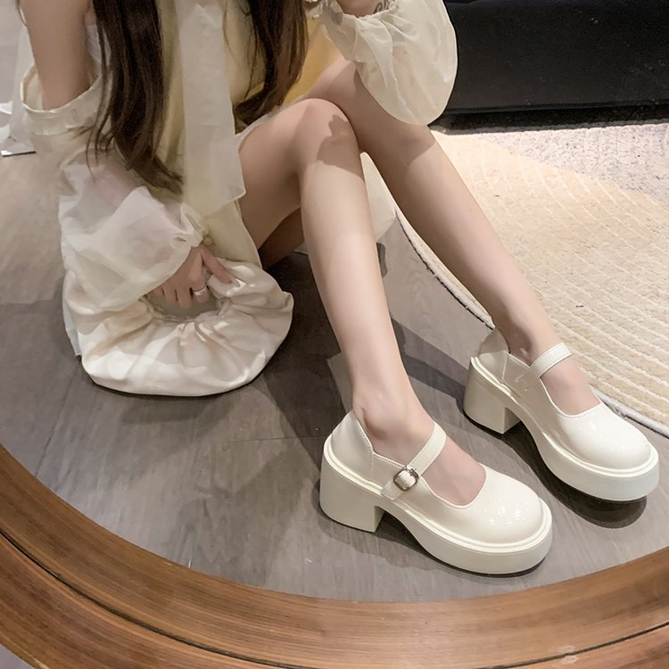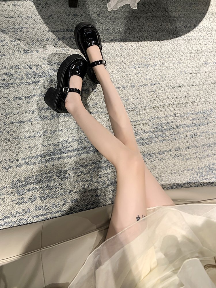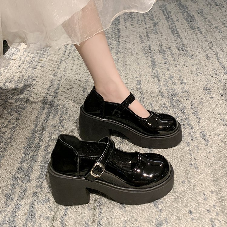 영국 스타일 메리 제인 신발 여성의 2024 년 봄과 여름 새로운 두꺼운 힐 싱글 레이어 신발 한 줄 버클 두꺼운 하단 얕은 입 조커 작은 가죽 신발스토어 가기