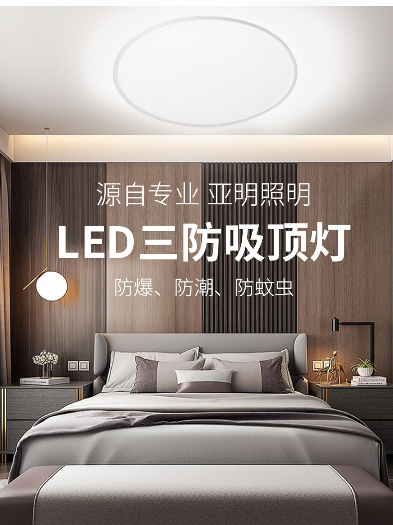 Yaming 초박형 천장 램프 라운드 3 방증 램프 침실 발코니 복도 건설 현장 조명 엔지니어링 램프 LED 복도 램프