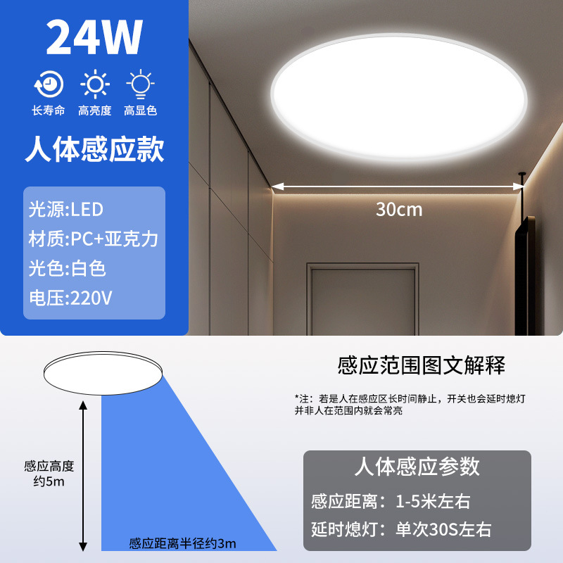 Yaming 초박형 천장 램프 라운드 3 방증 램프 침실 발코니 복도 건설 현장 조명 엔지니어링 램프 LED 복도 램프스토어 가기