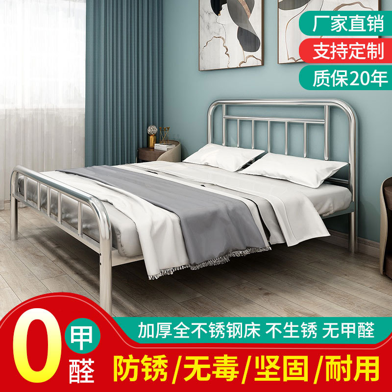 스테인레스 스틸 더블 침대 도매 컬러 도금 304 스테인레스 스틸 침대 1.8m 침대 아파트 침대 두꺼운 철 프레임 침대 침대 침대 프레임 1.8스토어 가기