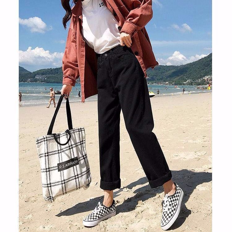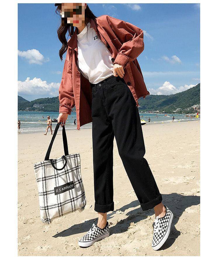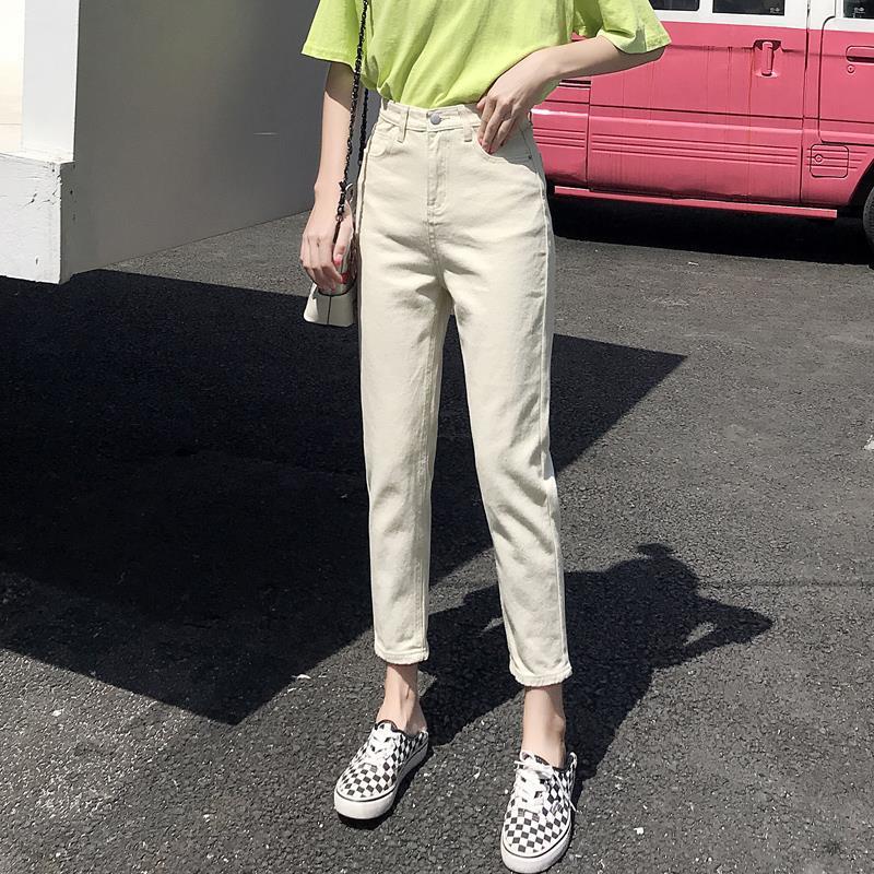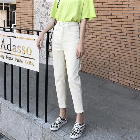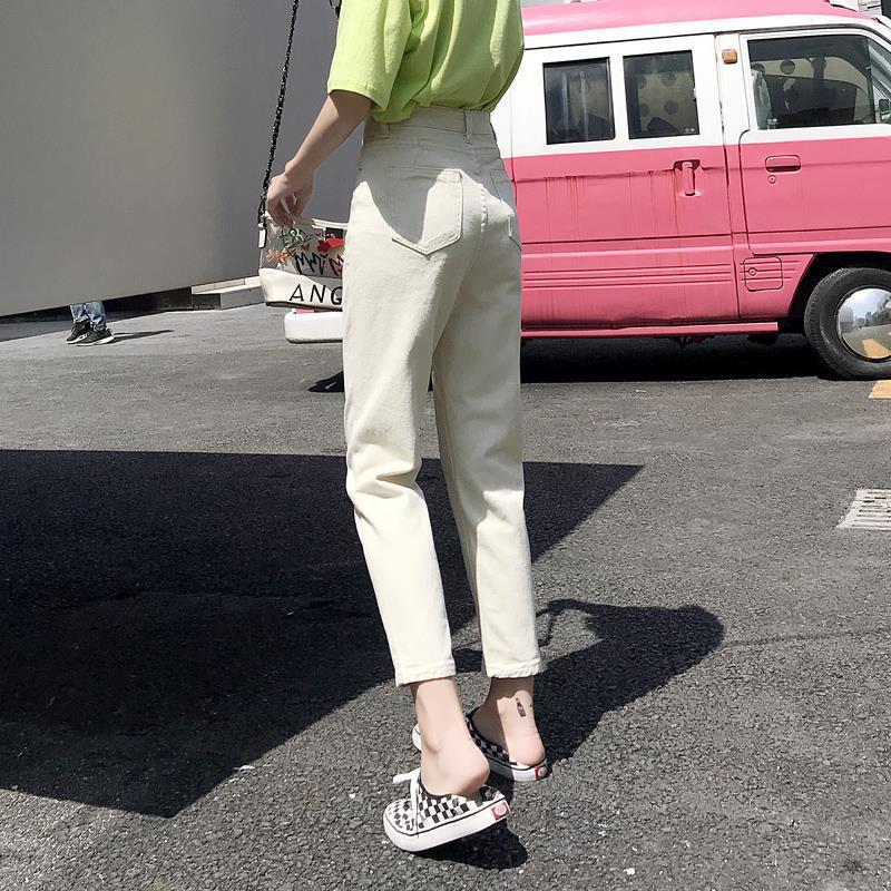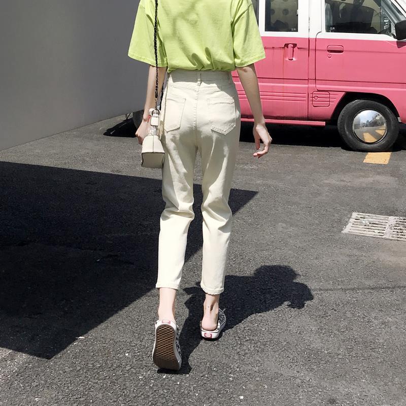 아카데미 스타일 아이보리 자른 청바지 여자 올 매치 봄과 여름 2024 새로운 느슨한 스트레이트 팬츠 할란 팬츠 얇은스토어 가기