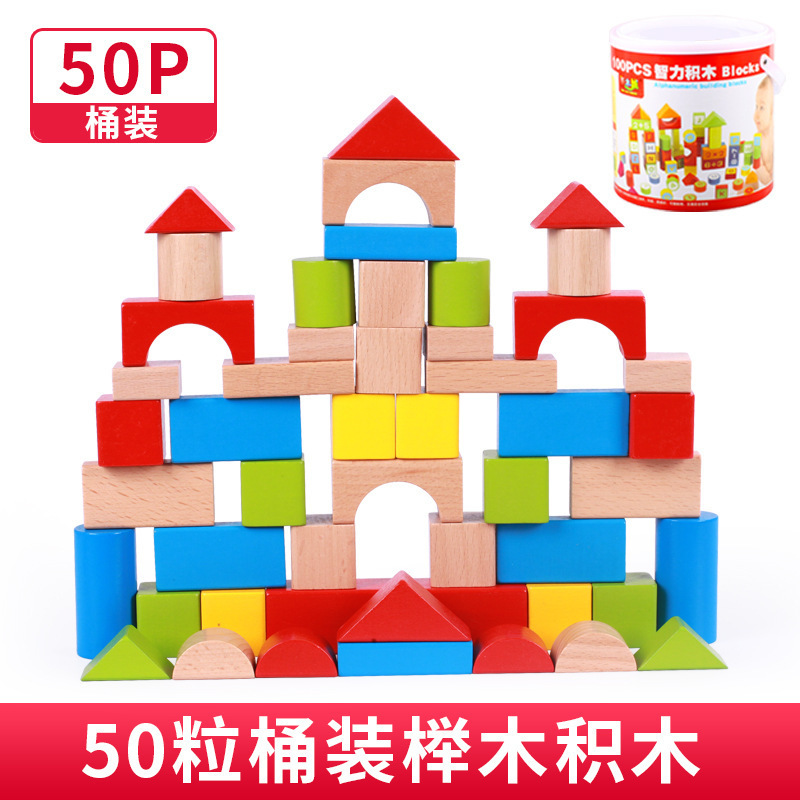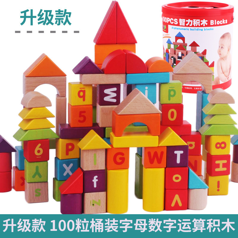 나무 어린이 대형 입자 빌딩 블록 장난감 어린이 교육 지능 개발 1-3 세 단단한 나무 아기 도매스토어 가기