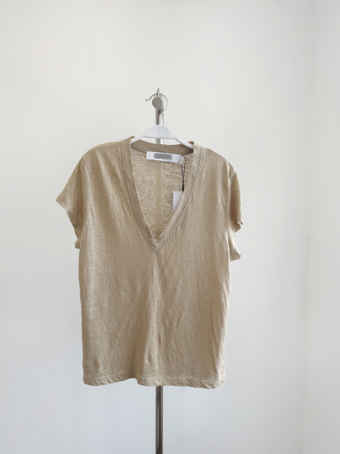 재고/자오 루시 홈스테드 여성 여름 프렌치 숄더 V 넥 반팔 리넨 티셔츠 탑스토어 가기