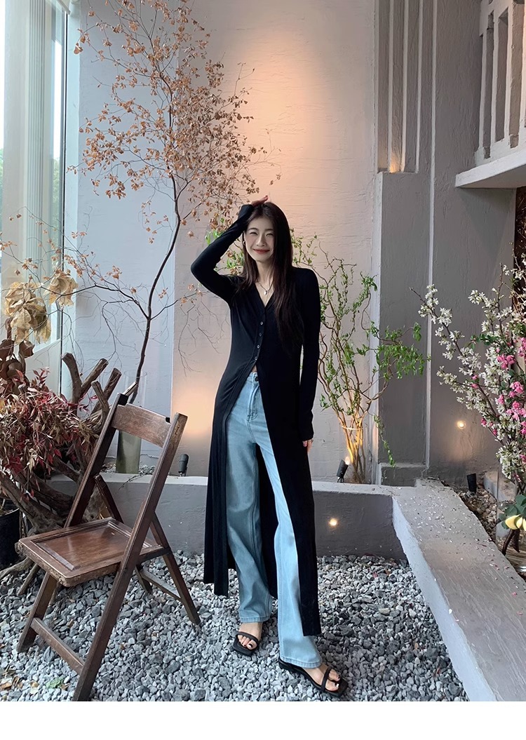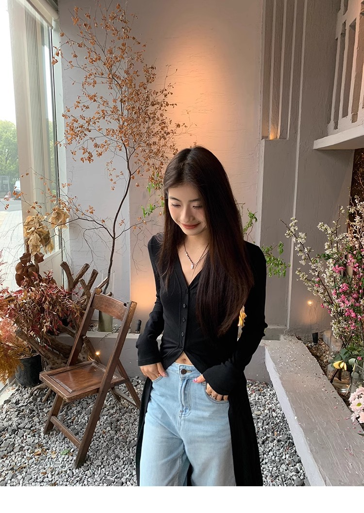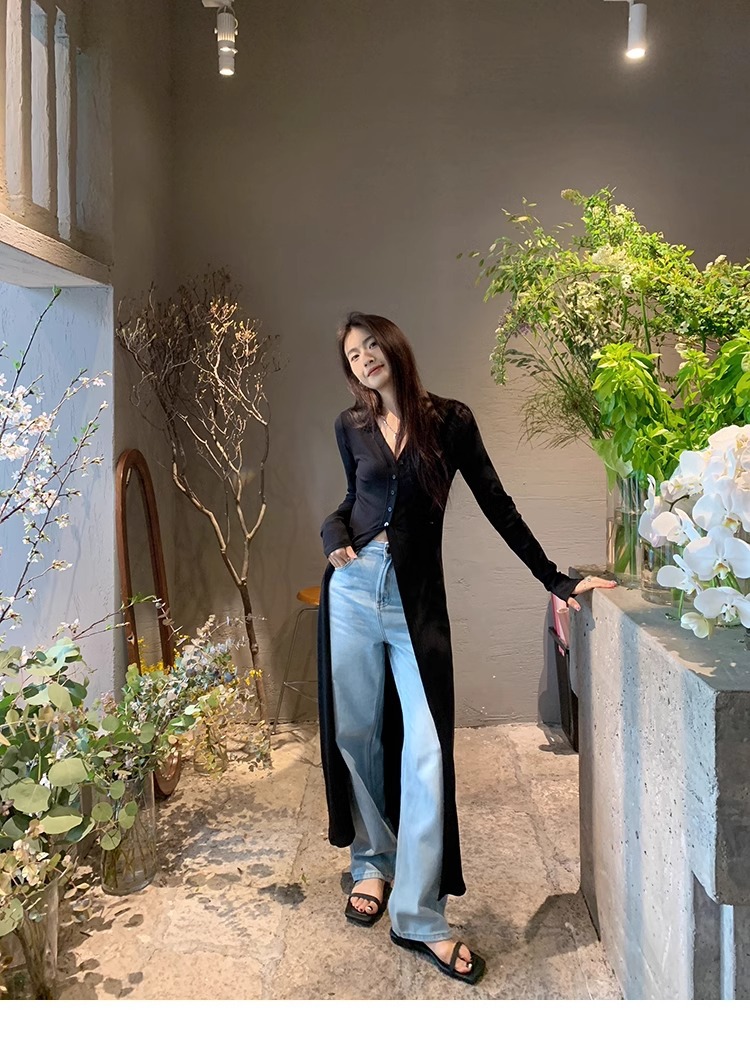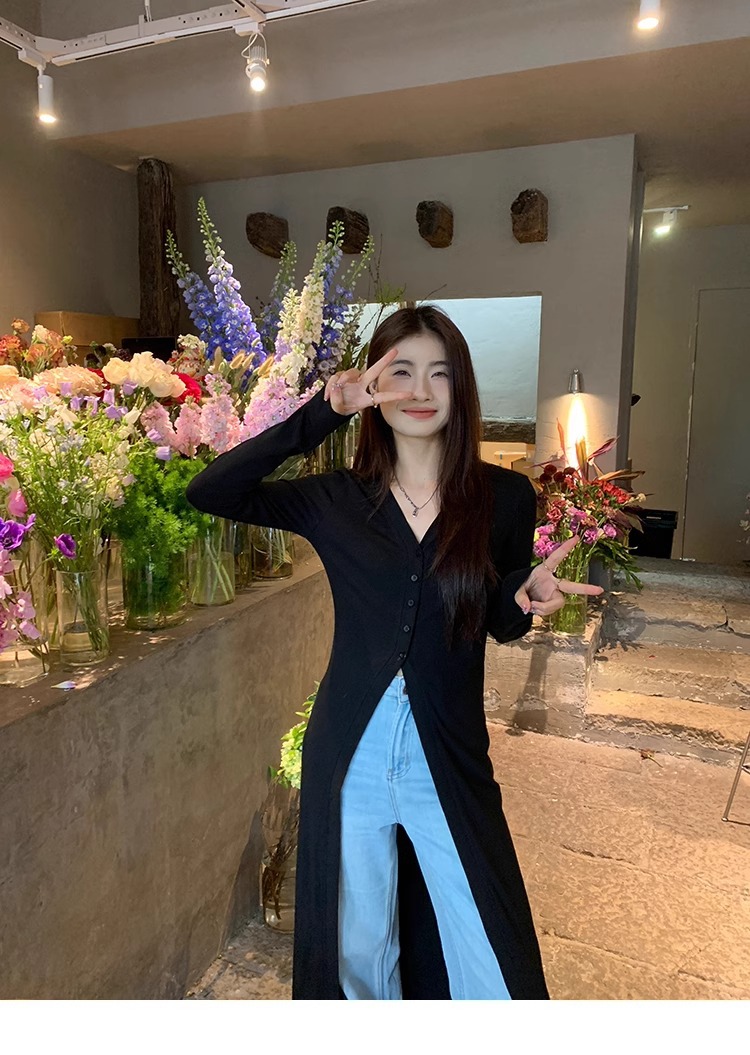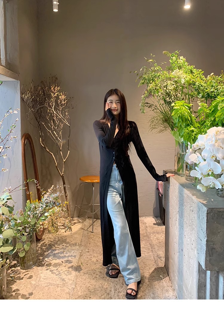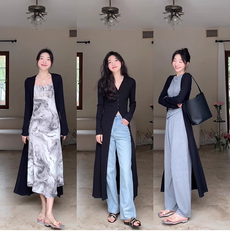 선스크린 코트 여성용 카디건 여름 얇은 디자인 센스 틈새 우아한 블랙 V-넥 긴 소매 탑스토어 가기