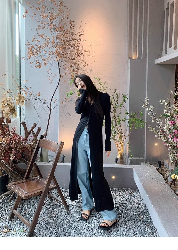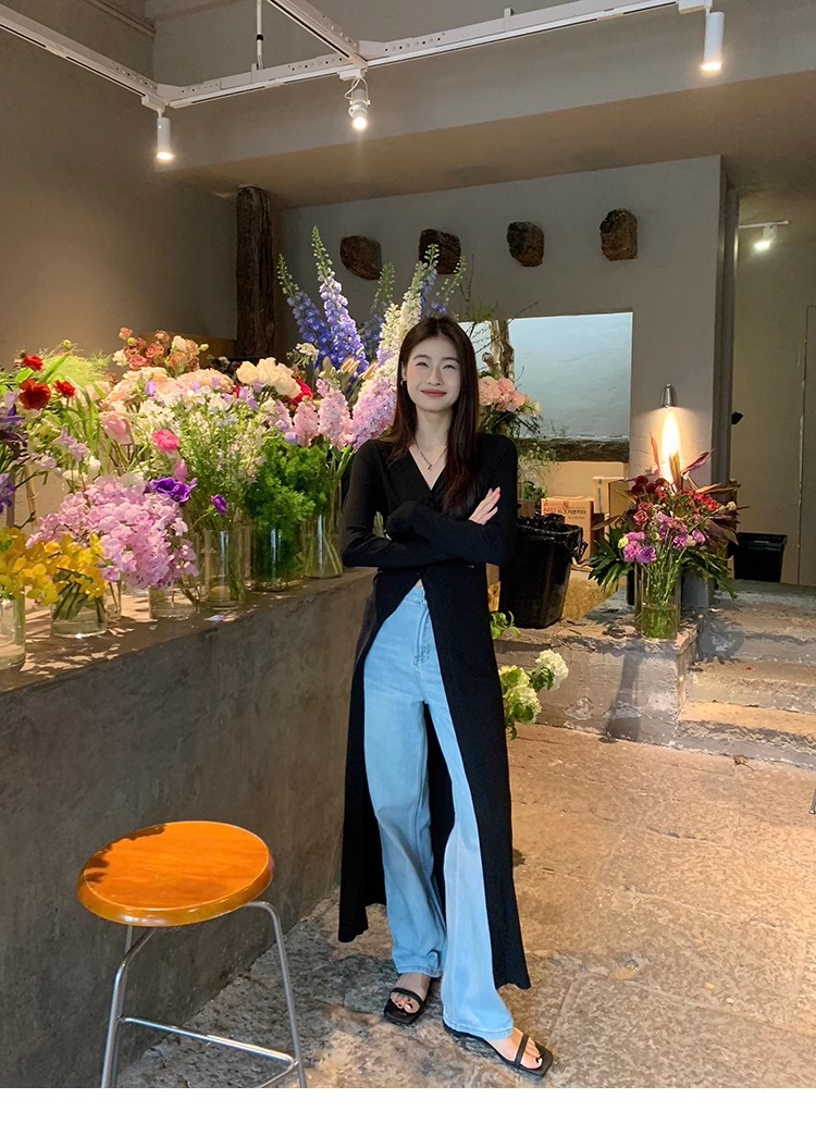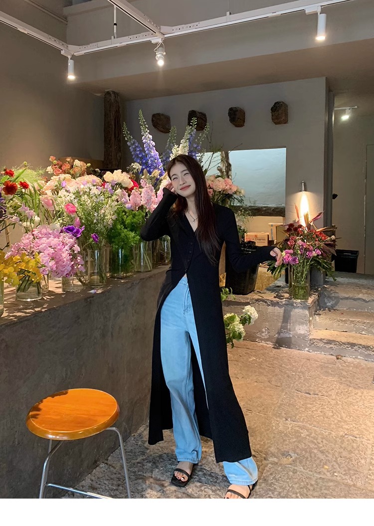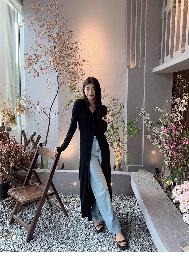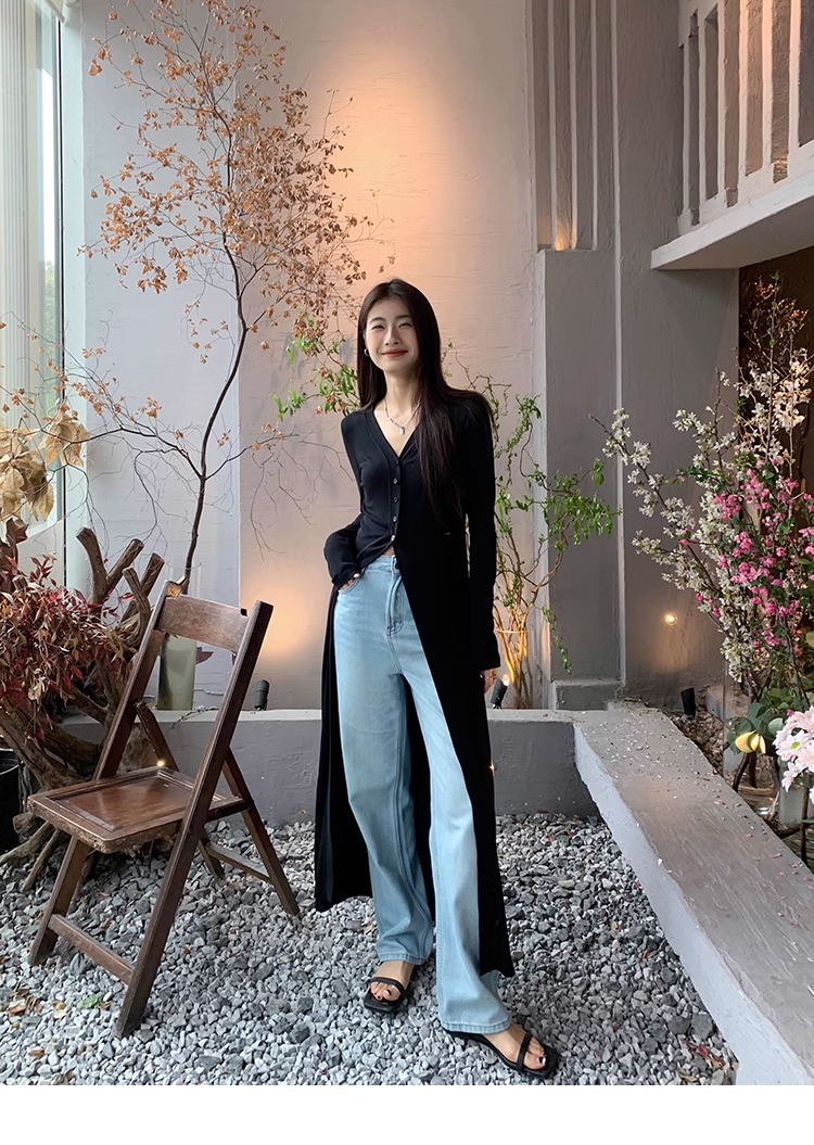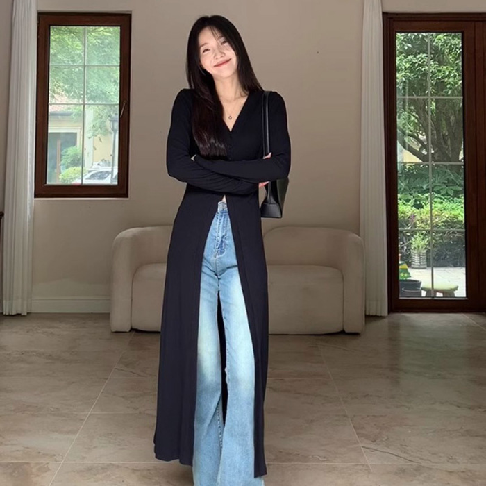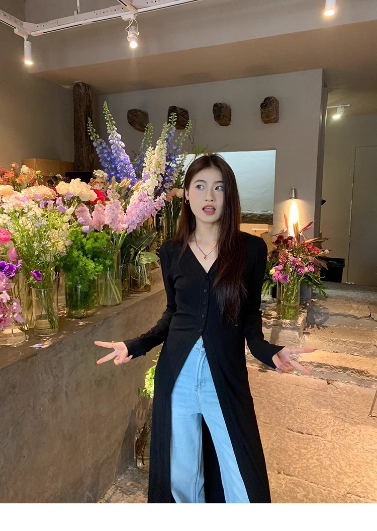 선스크린 코트 여성용 카디건 여름 얇은 디자인 센스 틈새 우아한 블랙 V-넥 긴 소매 탑스토어 가기