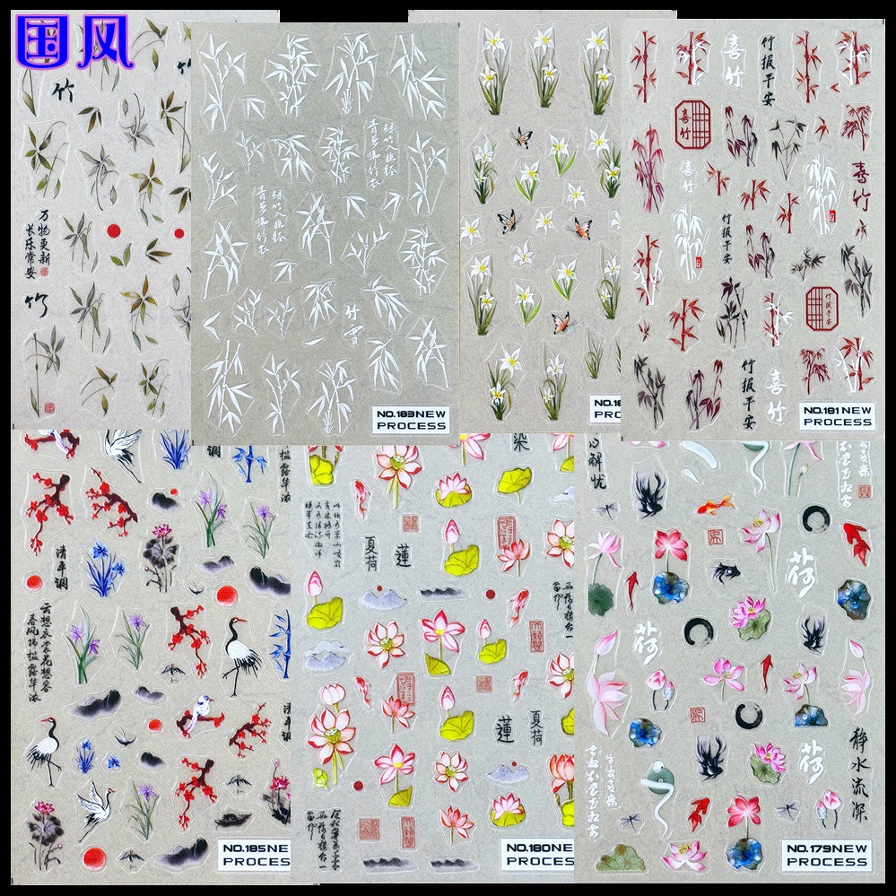 토끼 눈송이 크리스마스 스타일 프렌치 라인 네일 스티커 투명 꽃 중국풍 대나무 잎 매화 네일 스티커스토어 가기