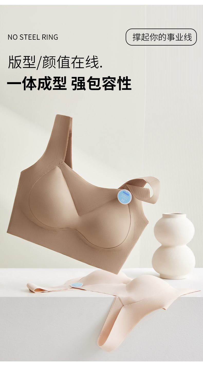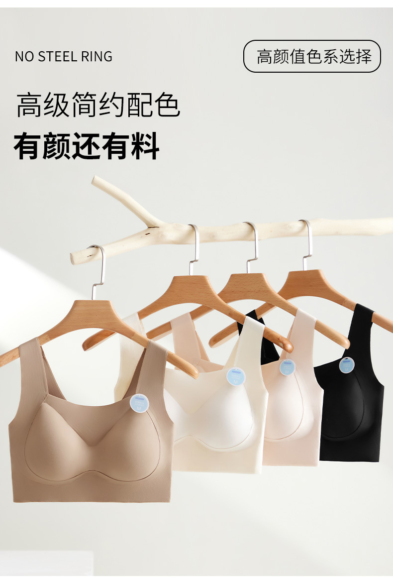 Traceless Bra 넓은 어깨 스트랩 아름다운 등 여성의 Rimless Litching Chest 쇼케이스 작은 Parammary Breasts 안티 처짐 어퍼 브라 얇은 속옷스토어 가기