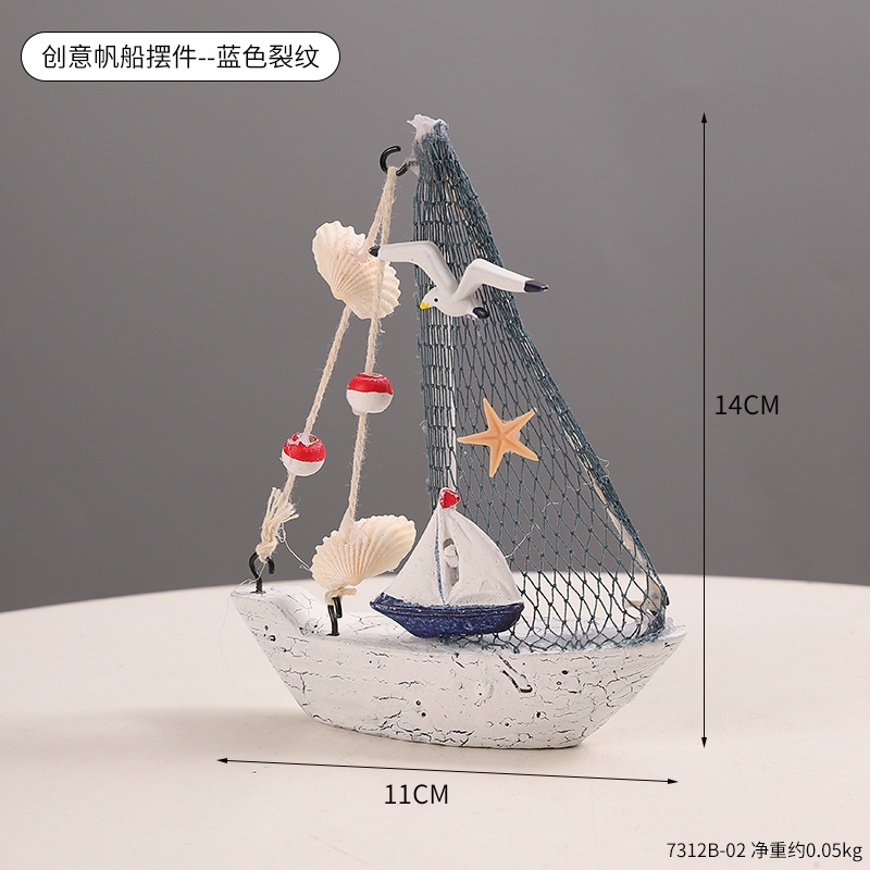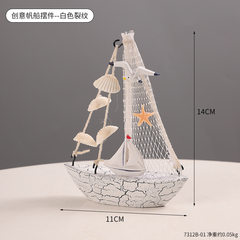 새로운 국경 지중해 나무 항해 작은 장식품 쉘 균열 작은 보트 장식품 항해 모델 홈 장식스토어 가기