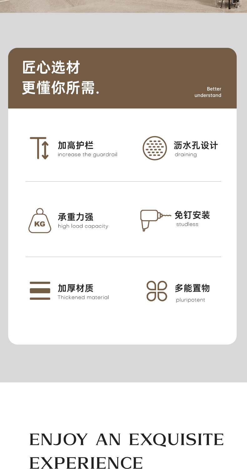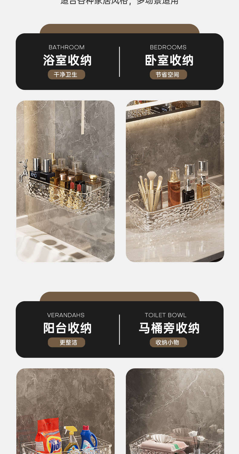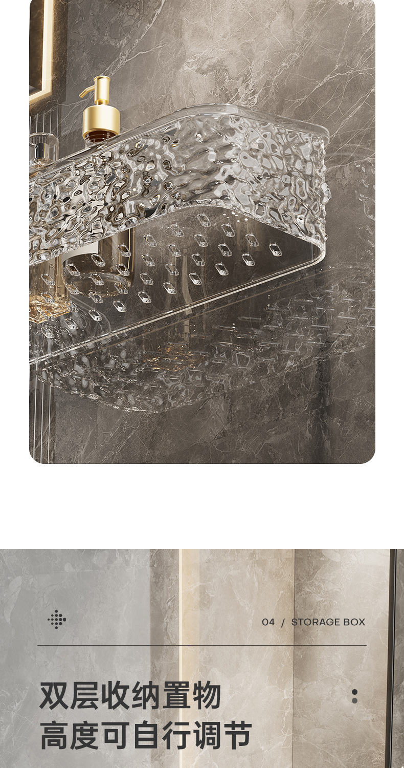 고급 플라스틱 럭셔리 욕실 이중 선반 벽걸이형 무타공 세면대 수납 선반
