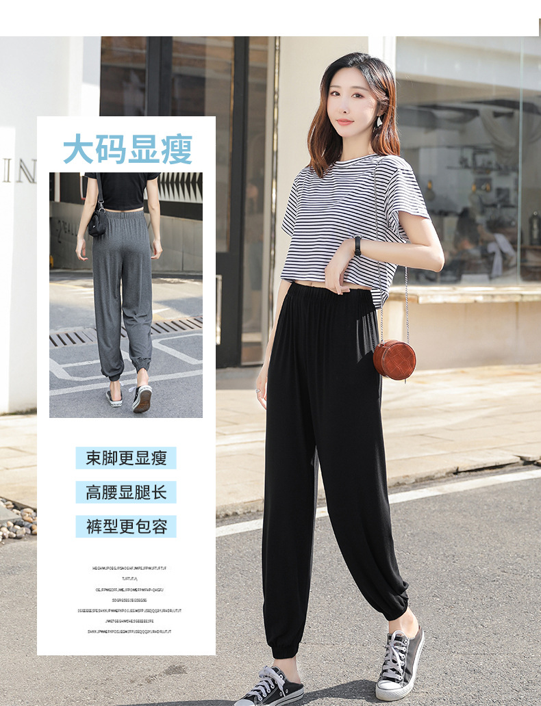 플러스 사이즈 모달 니커 보커 여성 여름 얇은 지방 mm200 kg 높은 허리 느슨한 슬림 처짐 스포츠 넓은 다리 바지스토어 가기