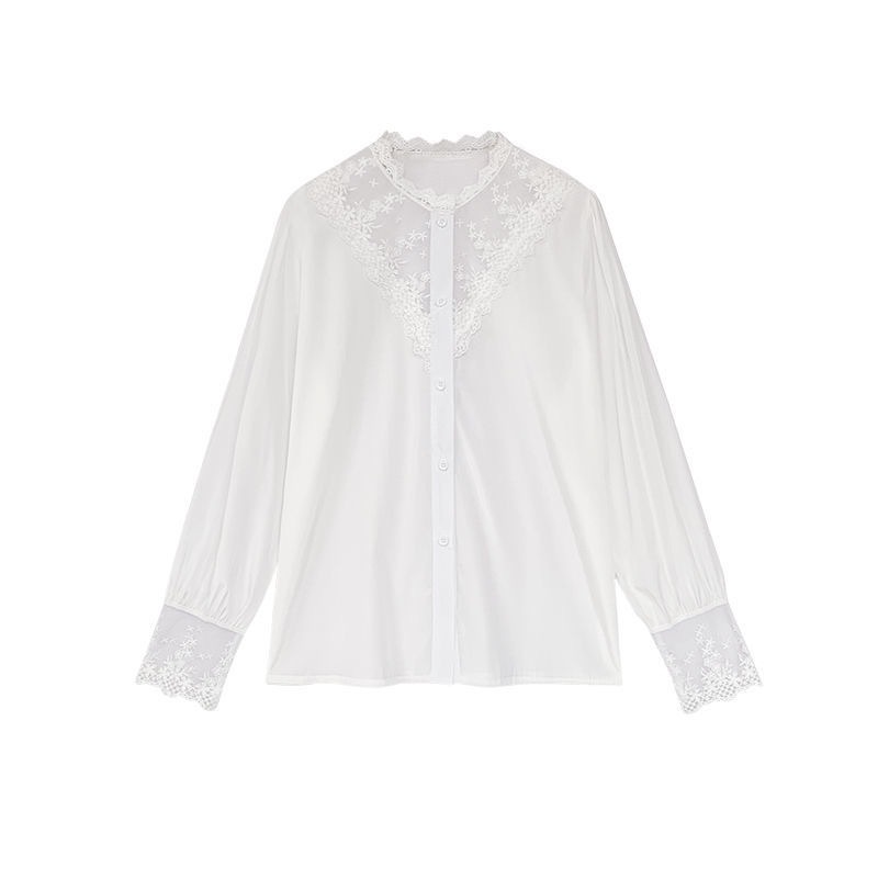 한국 스타일 1688 봄과 가을 섹시한 레이스 바닥 셔츠 디자인과 서양식 여성 탑 쉬폰 스플 라이스 셔츠