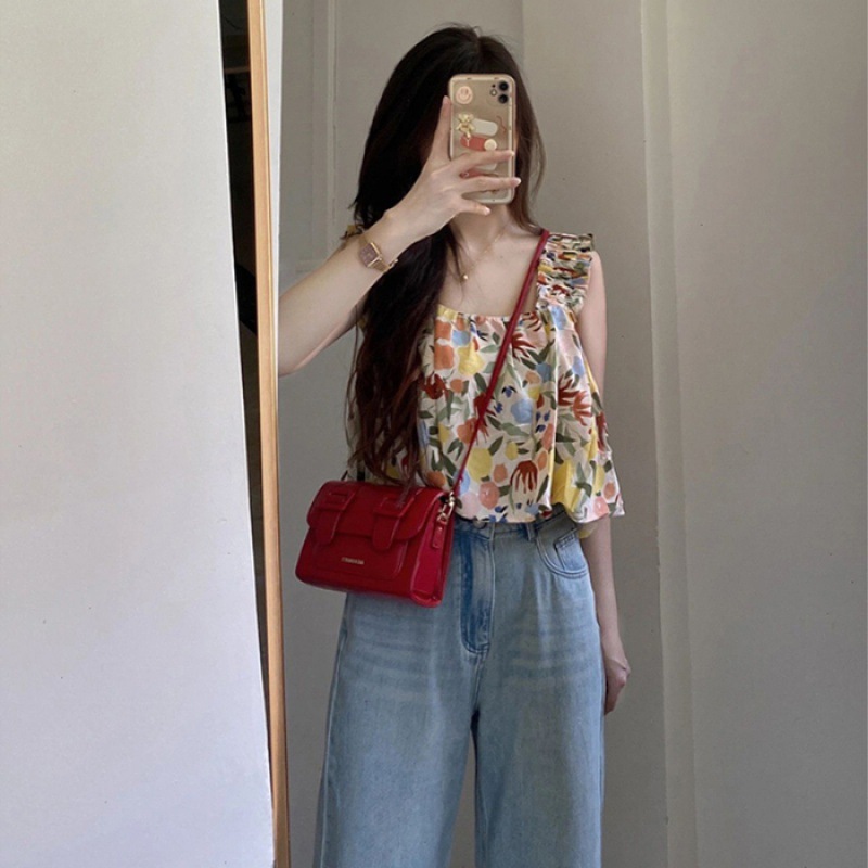 프랑스 달콤한 쉬폰 셔츠 꽃 작은 카미솔 여성용 내복 외복 여름 짧은 민소매 티셔츠 탑스토어 가기