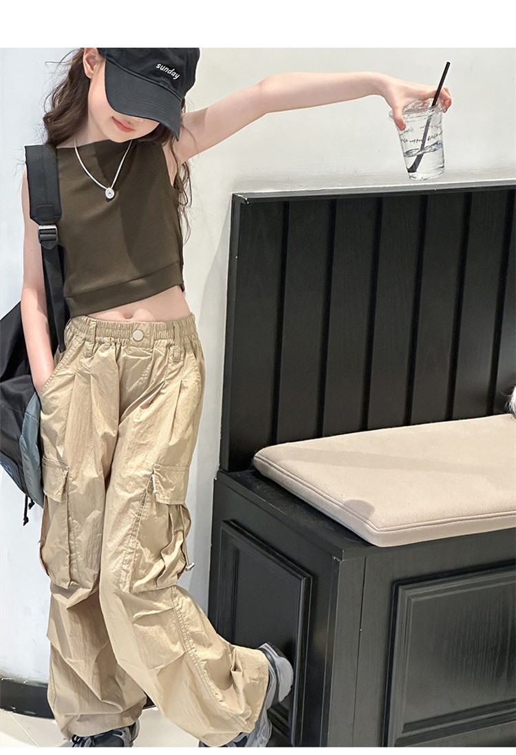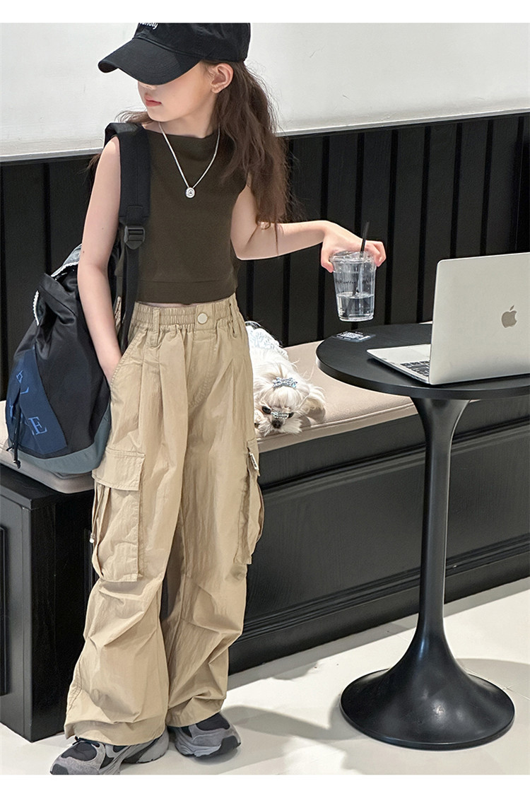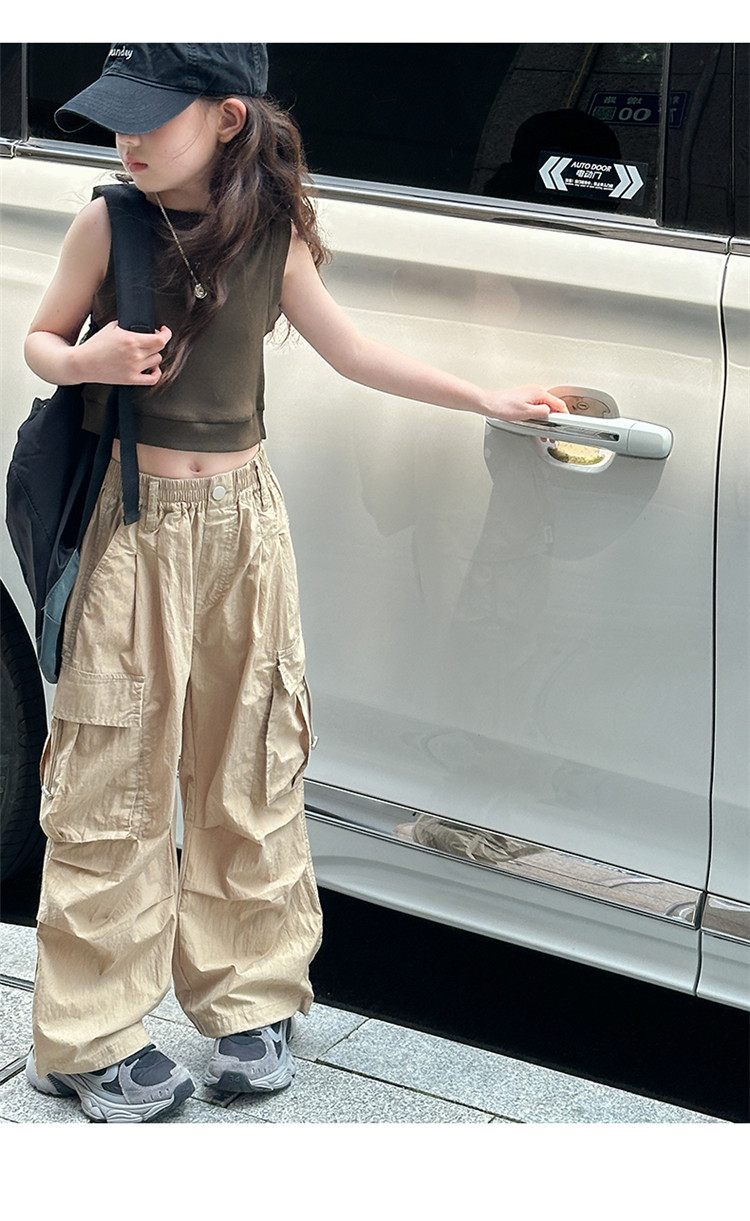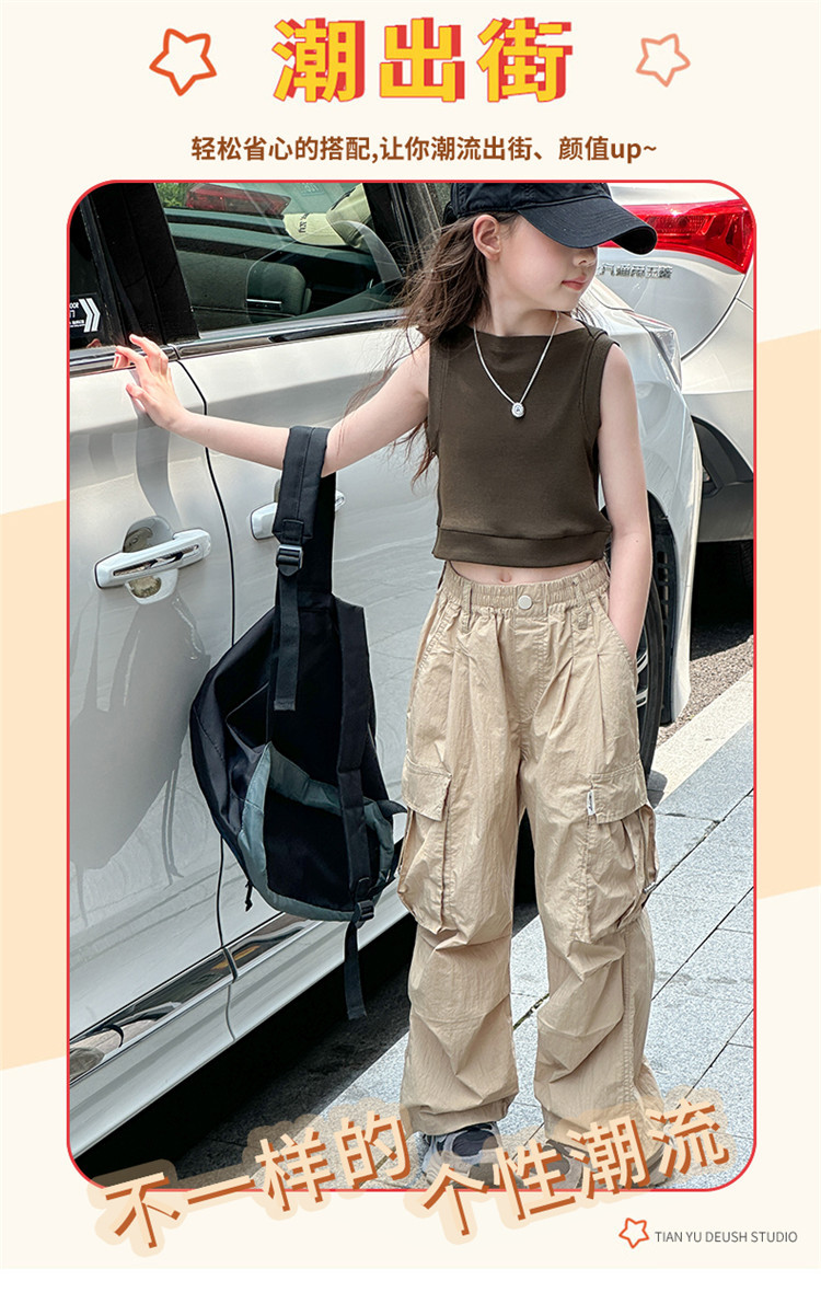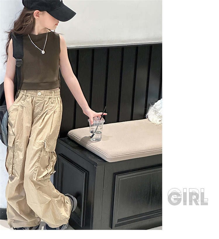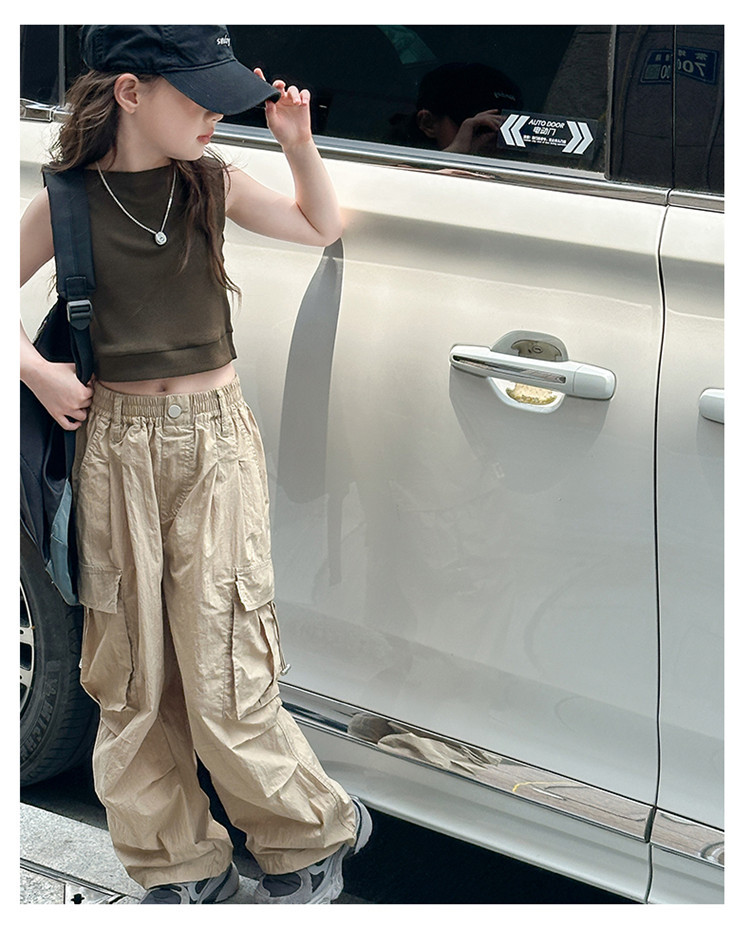 소녀 여름 군중 바지 2024 새로운 어린이 서양 스타일 얇은 캐주얼 바지 소녀 재즈 댄스 바지 빠른 건조 바지