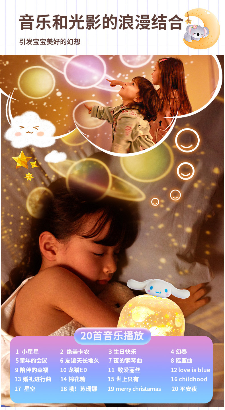 Sanrio KUROMI KUROMI 스타 프로젝션 램프 여성 생일 선물 뮤직 박스 뮤직 스타 라이트 나이트 라이트 라이트스토어 가기