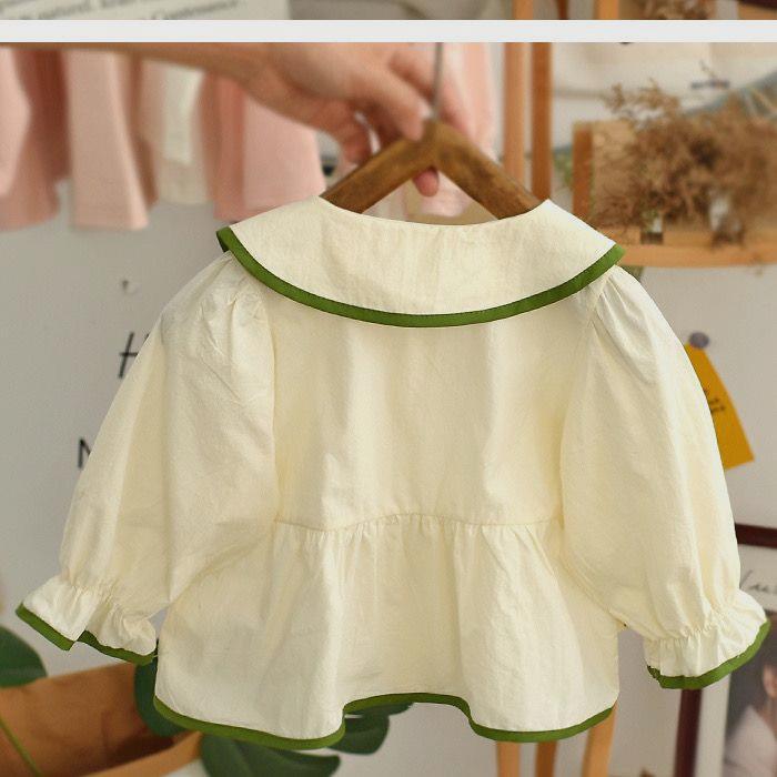 아기의 봄과 가을 옷 셔츠 인형 목걸이 소녀의 인형 셔츠 달콤한 모리 셔츠 긴 소매 어린 소녀의 아기 셔츠스토어 가기