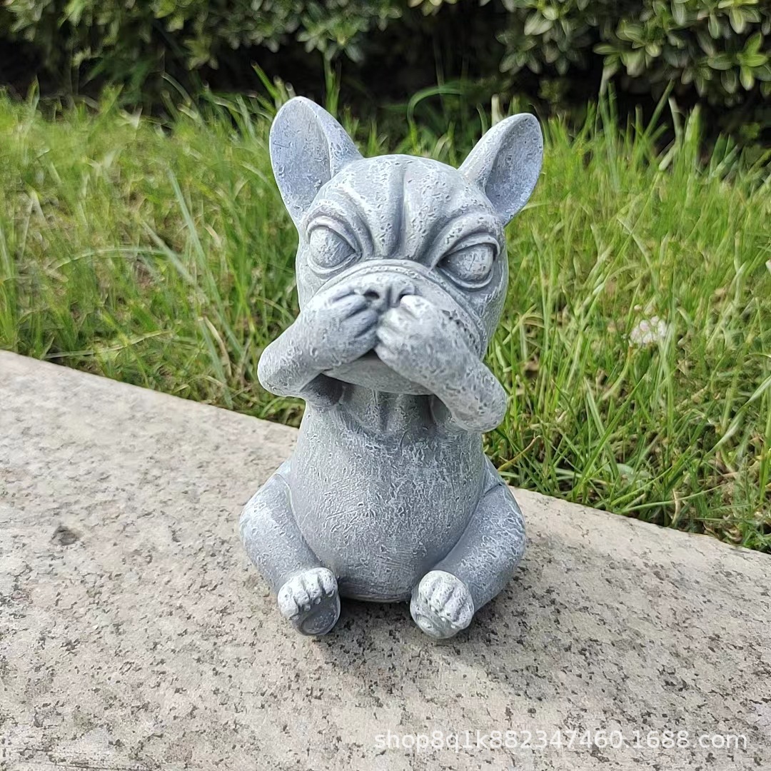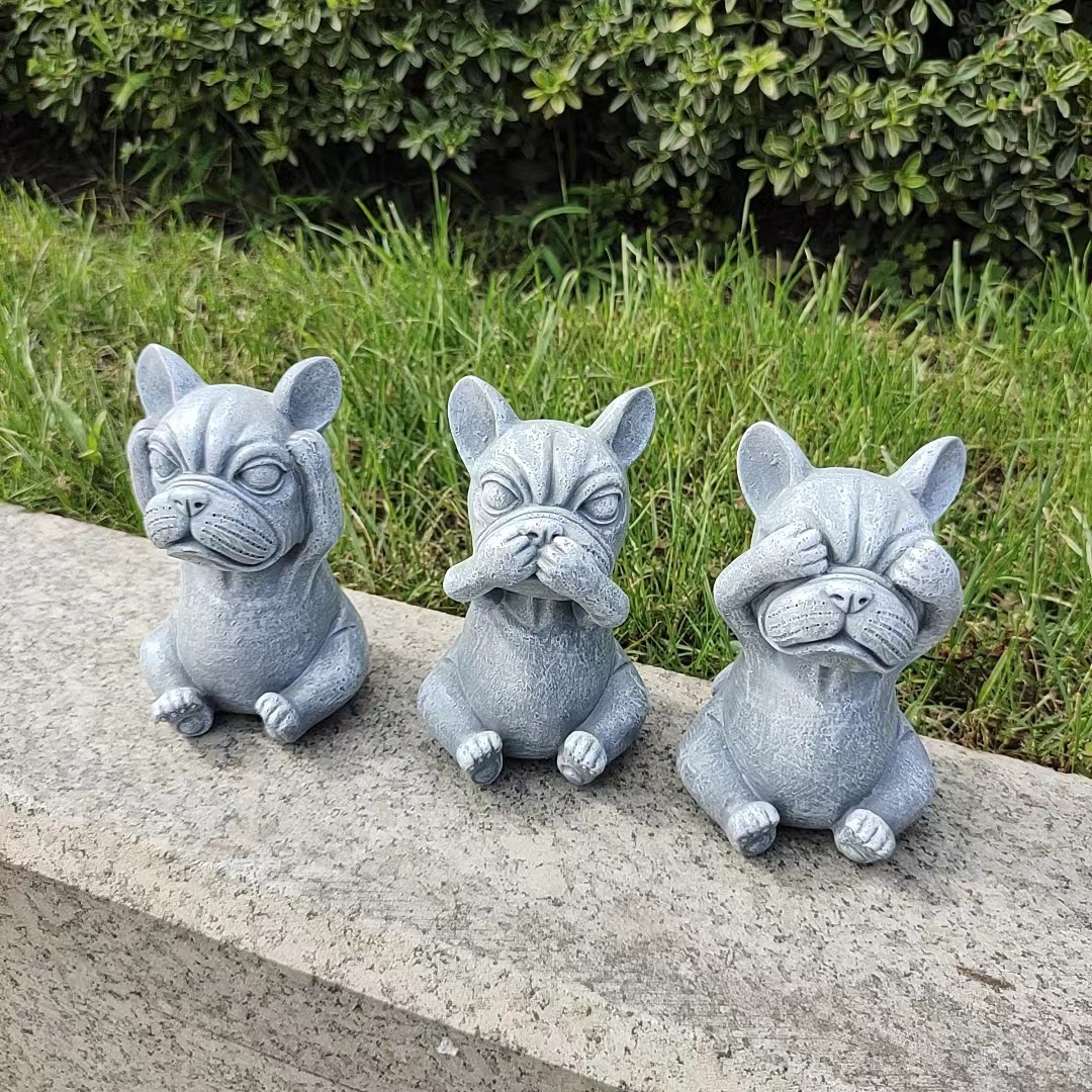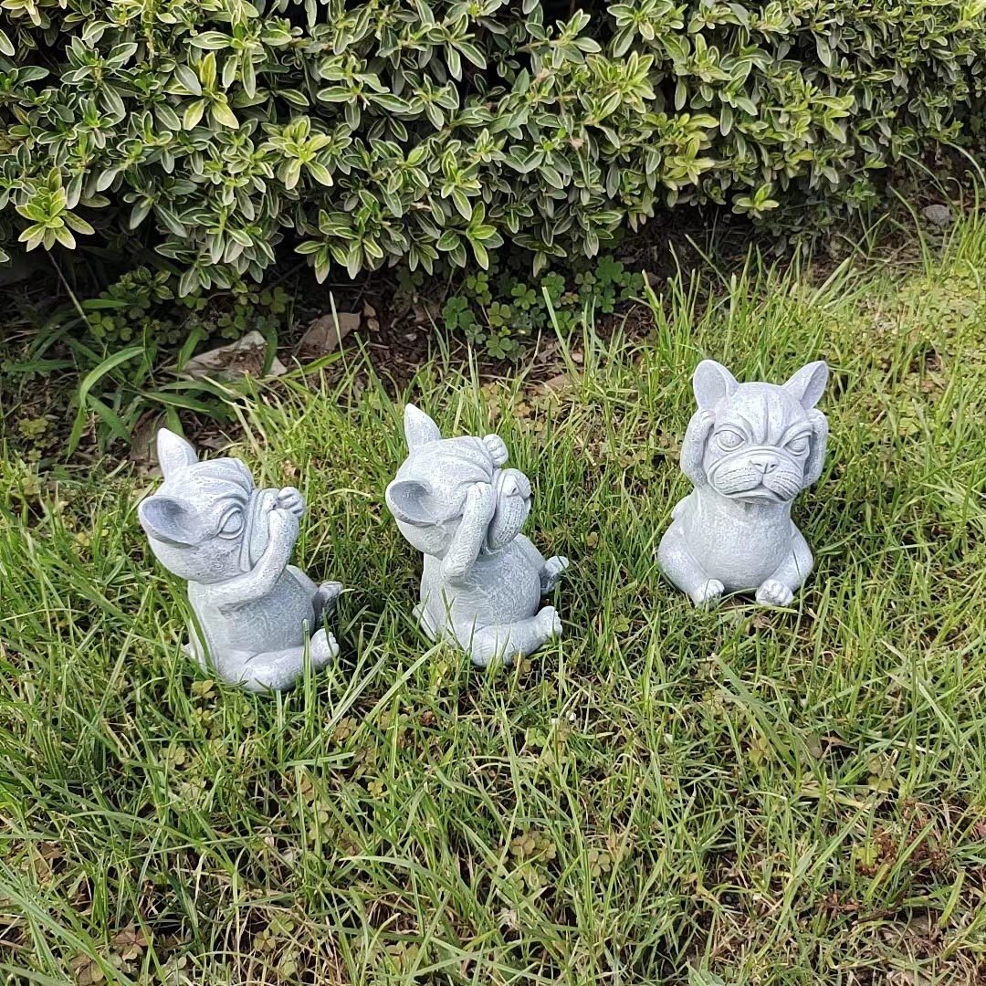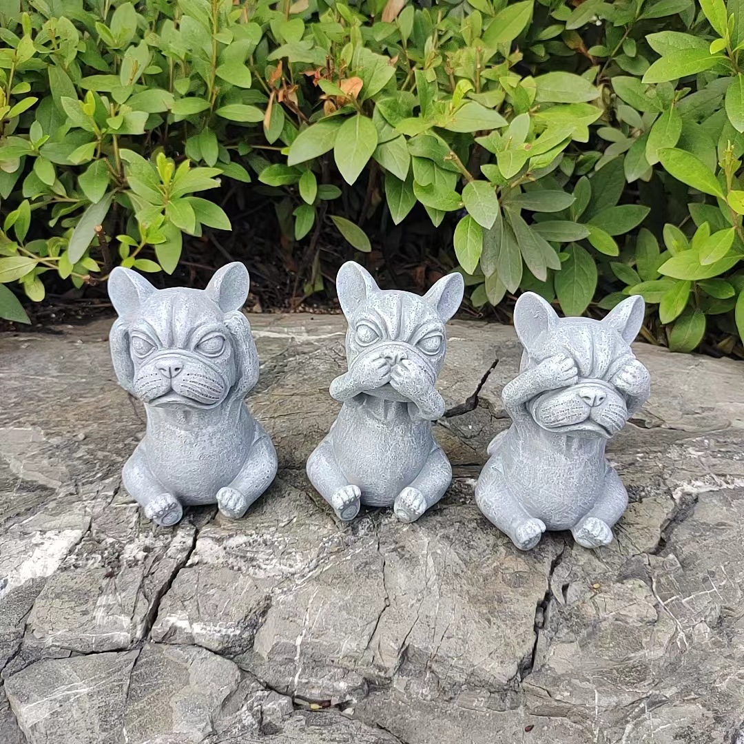 국경을 넘는 새로운 보지 말고, 듣지 말고, 정원 장식 명상 개 야외 잔디 만화 불독 장식 장식품을 말하지 마십시오스토어 가기
