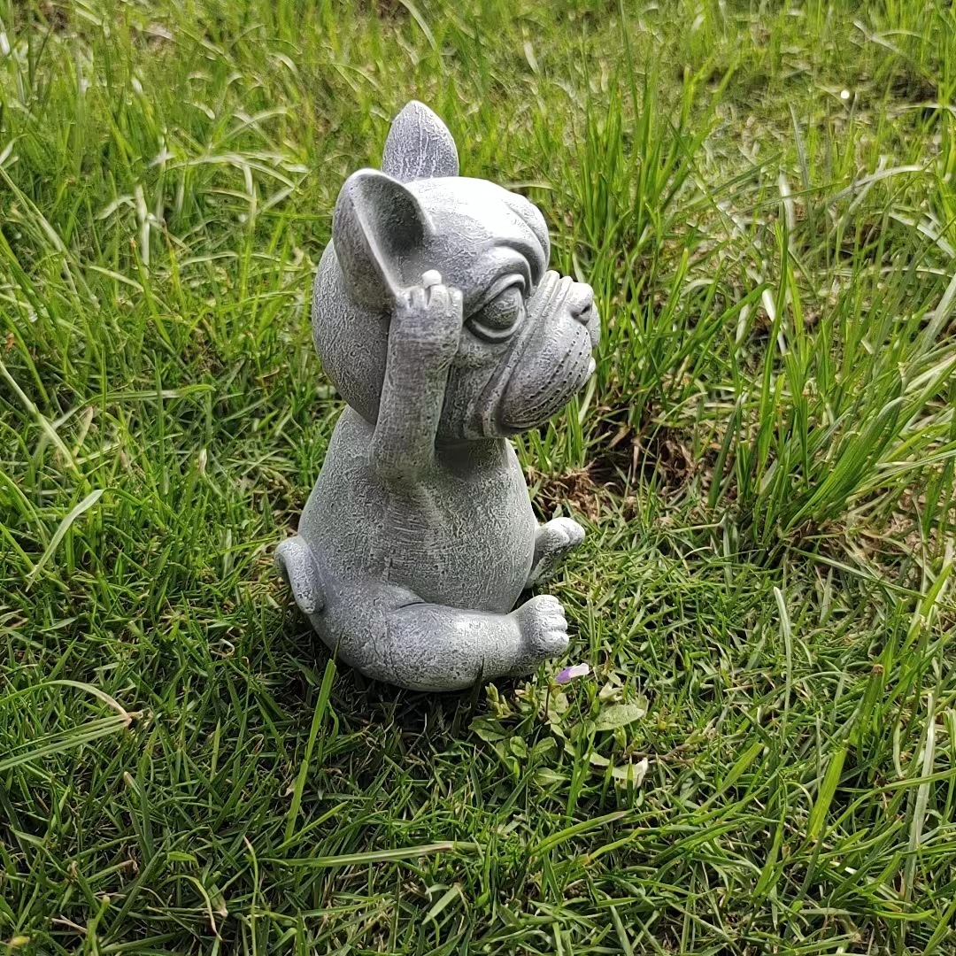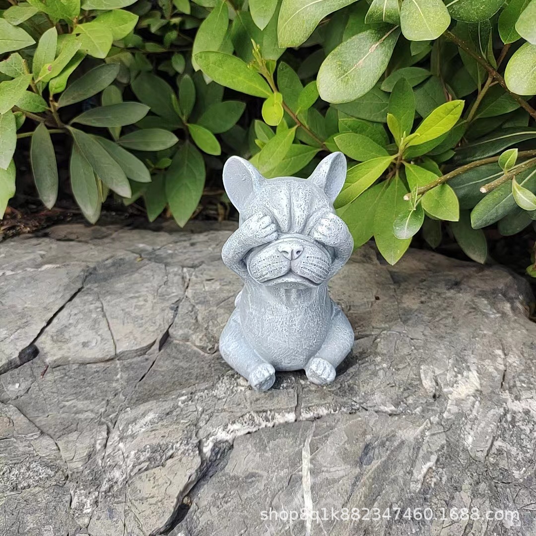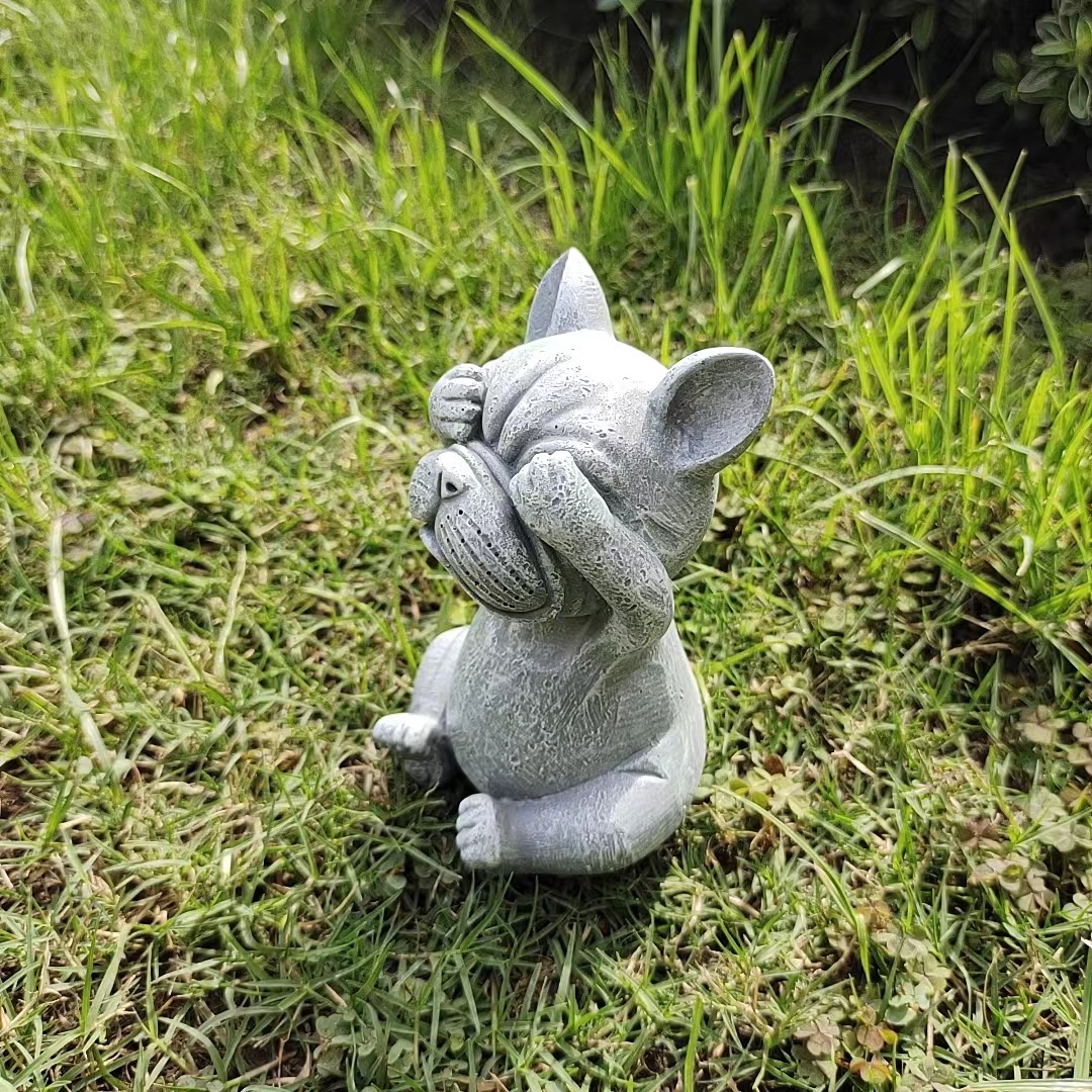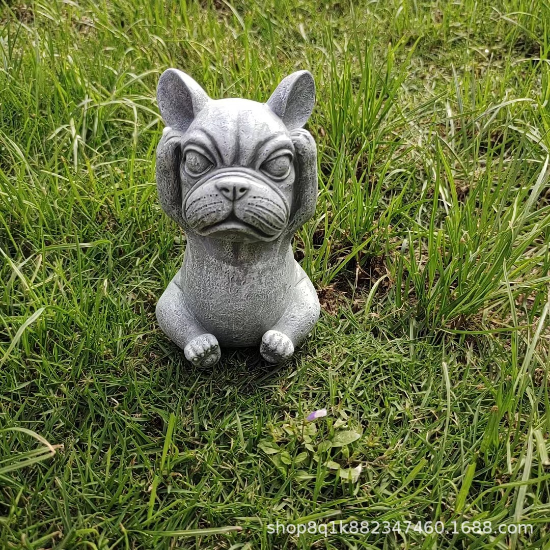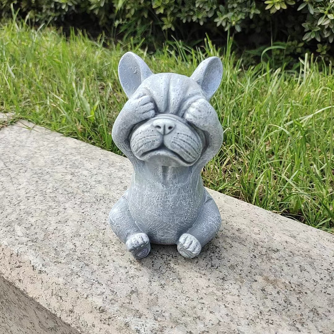 국경을 넘는 새로운 보지 말고, 듣지 말고, 정원 장식 명상 개 야외 잔디 만화 불독 장식 장식품을 말하지 마십시오스토어 가기