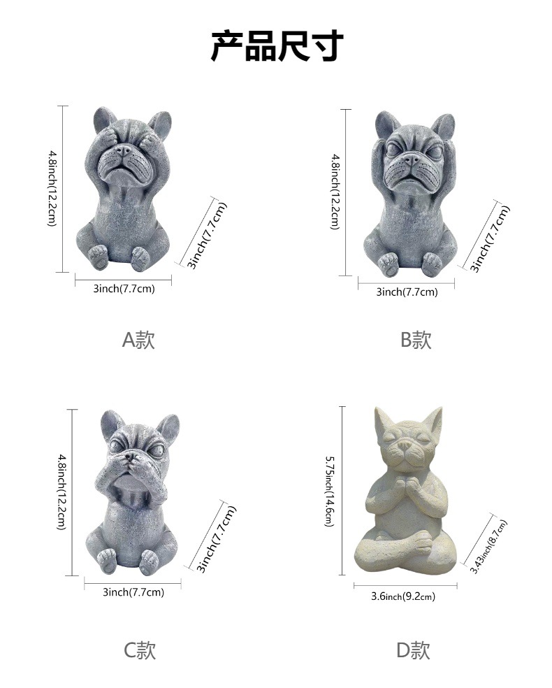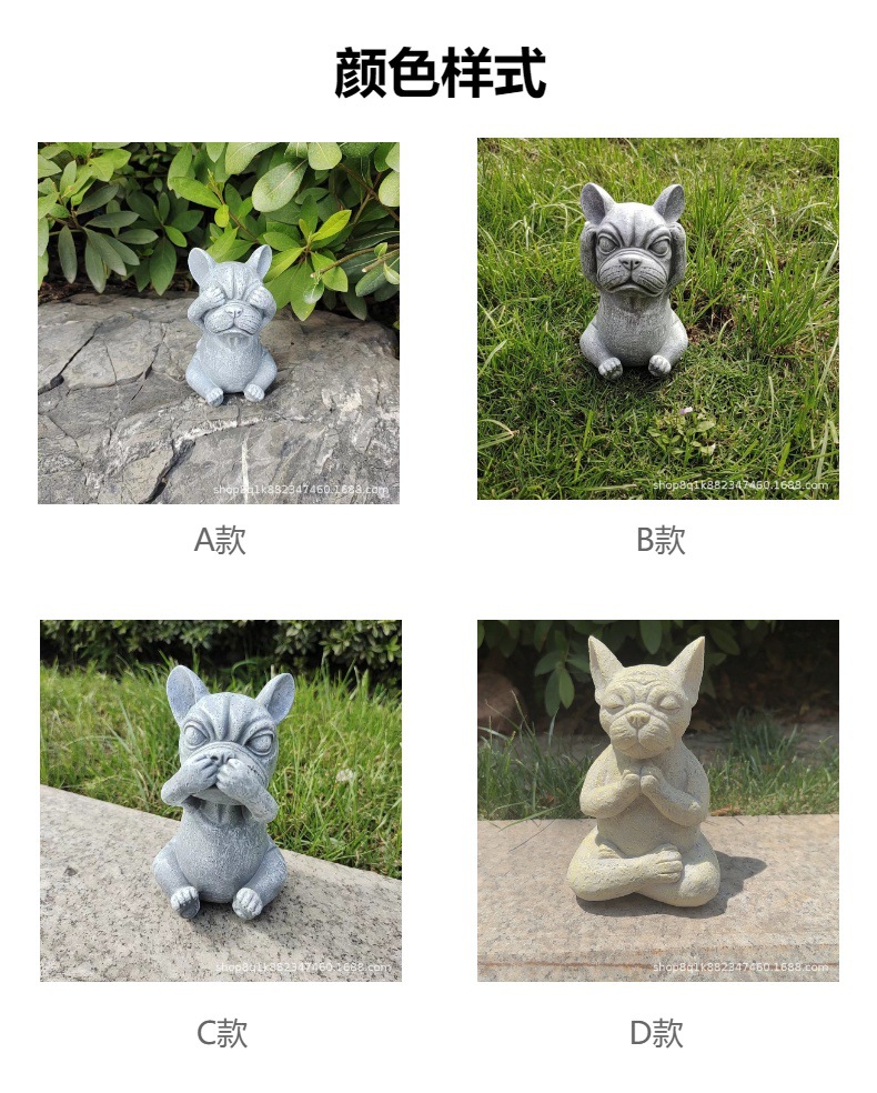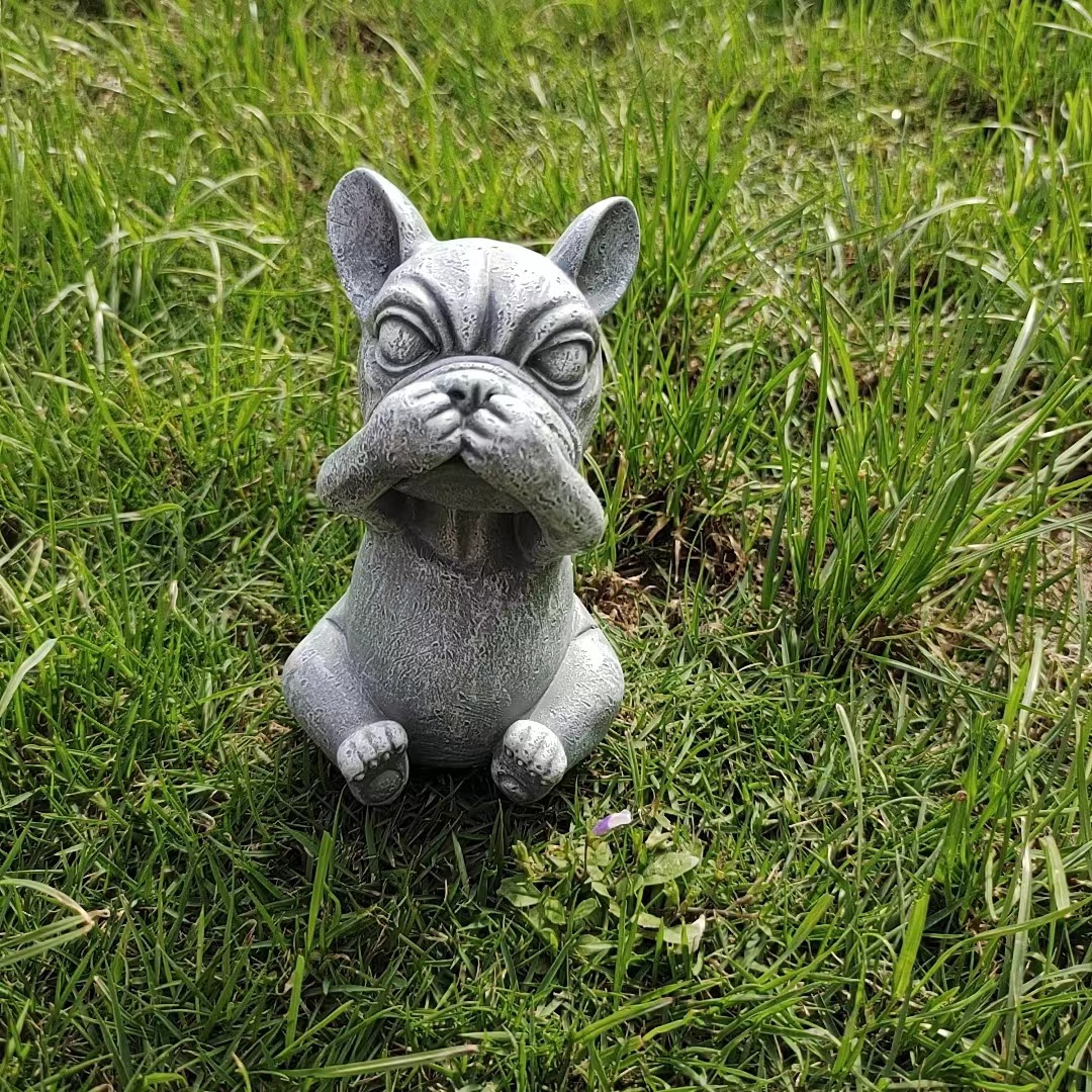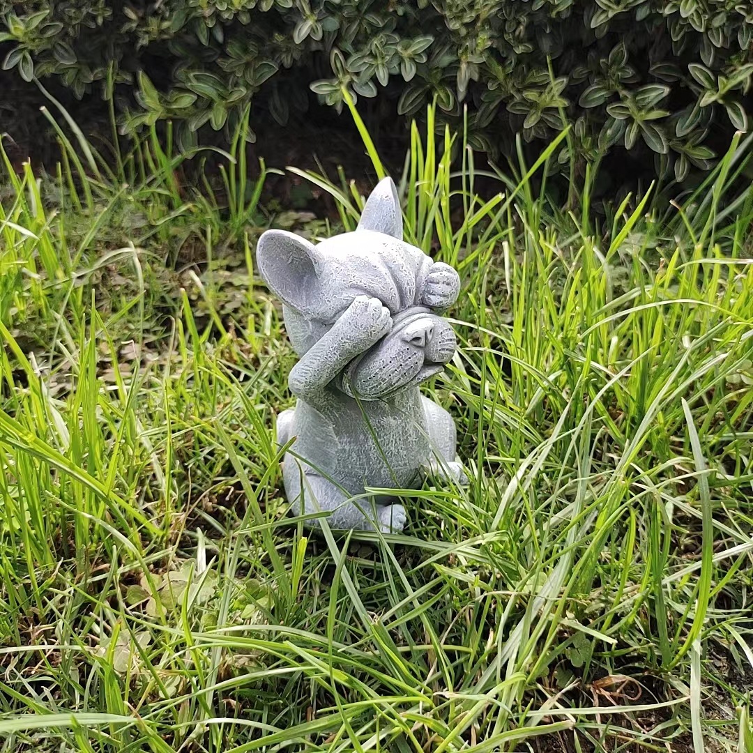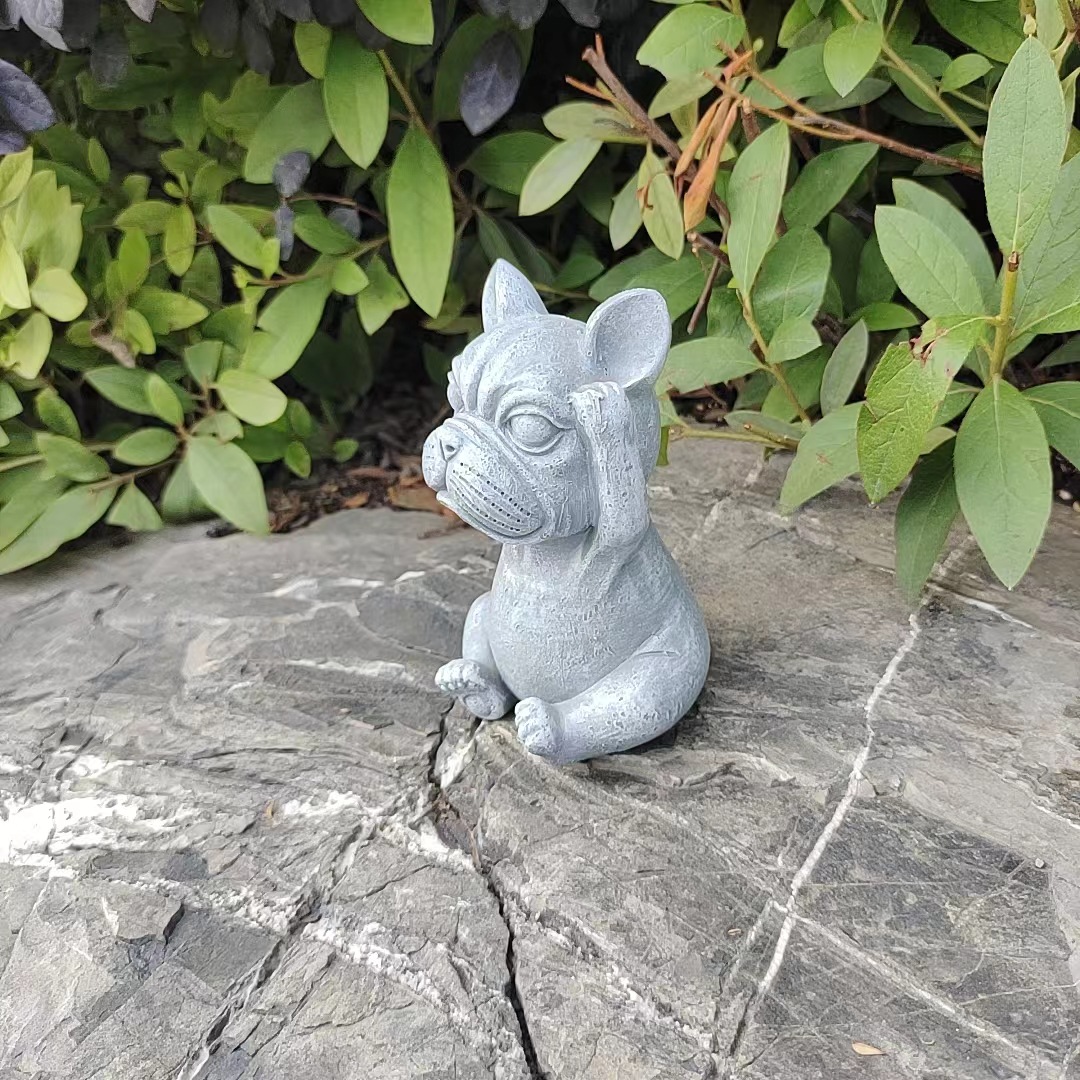 국경을 넘는 새로운 보지 말고, 듣지 말고, 정원 장식 명상 개 야외 잔디 만화 불독 장식 장식품을 말하지 마십시오스토어 가기