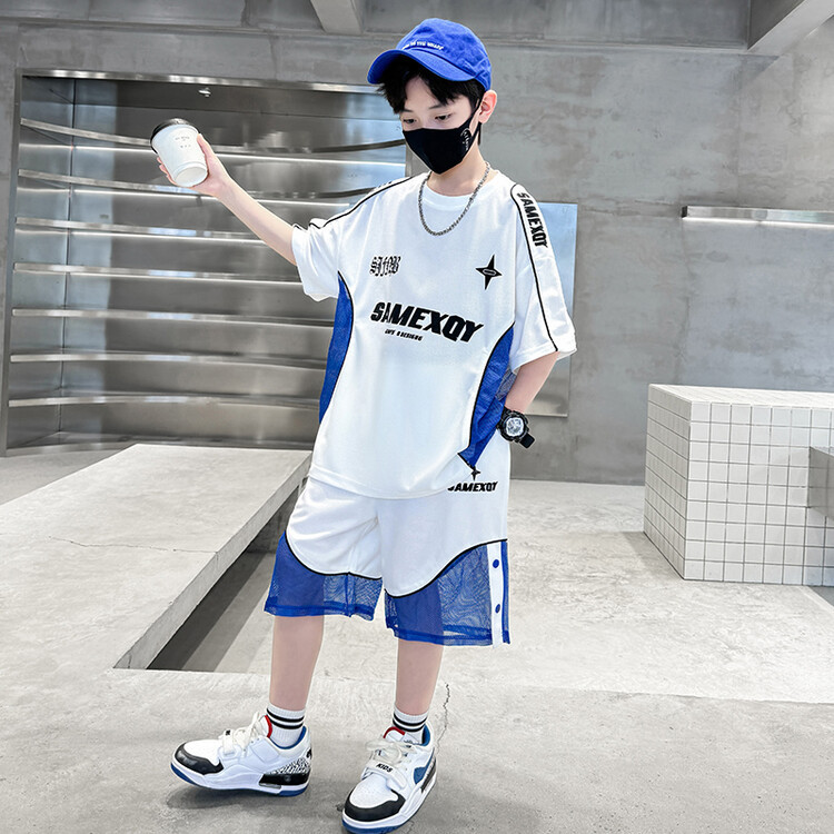남자들의 반소매 볼수트 여름 어린이 느슨한 운동복 빅 보이 잘 생긴 퀵 건조 반바지 여름 착용