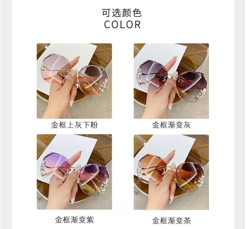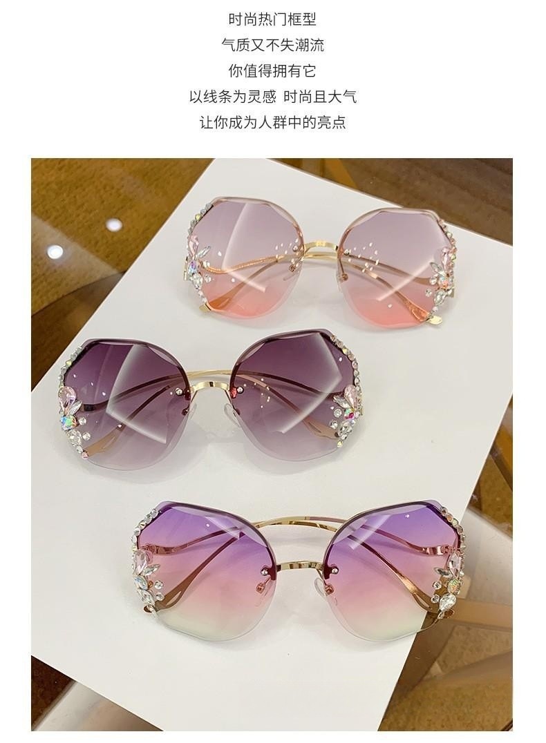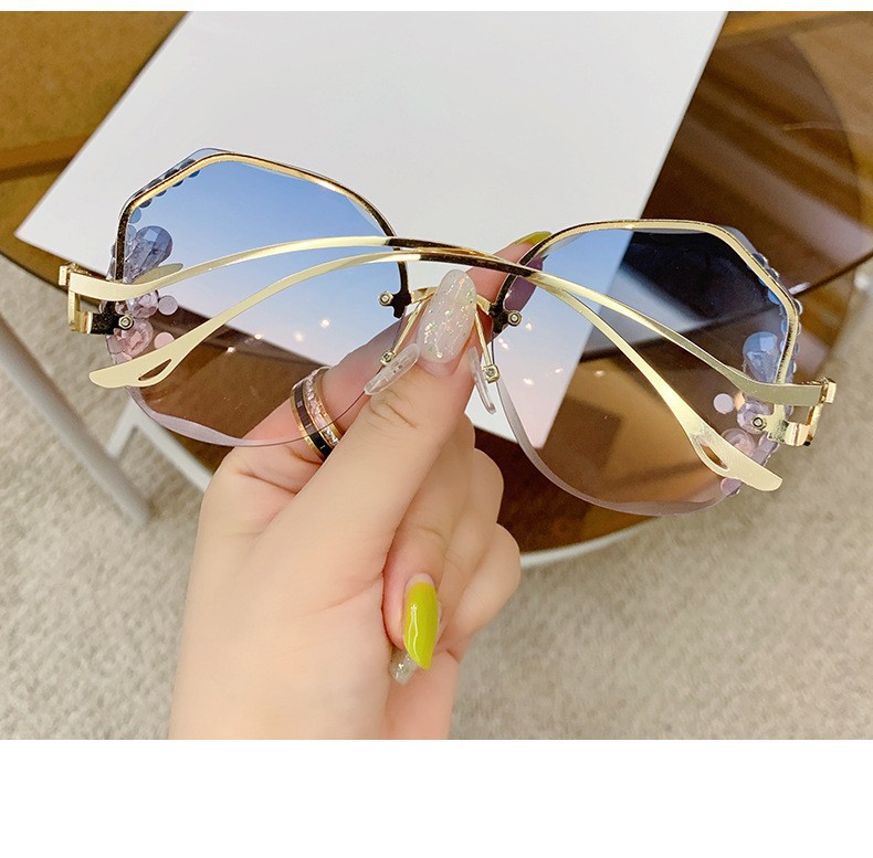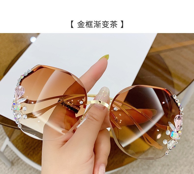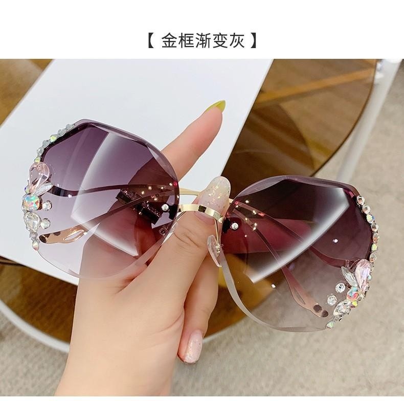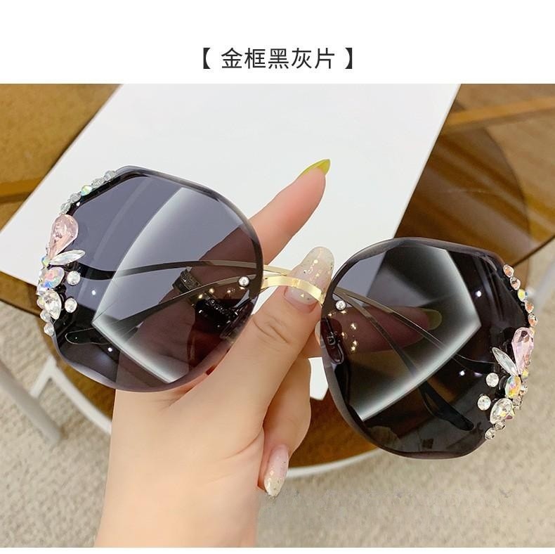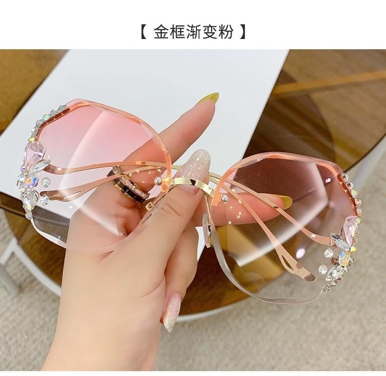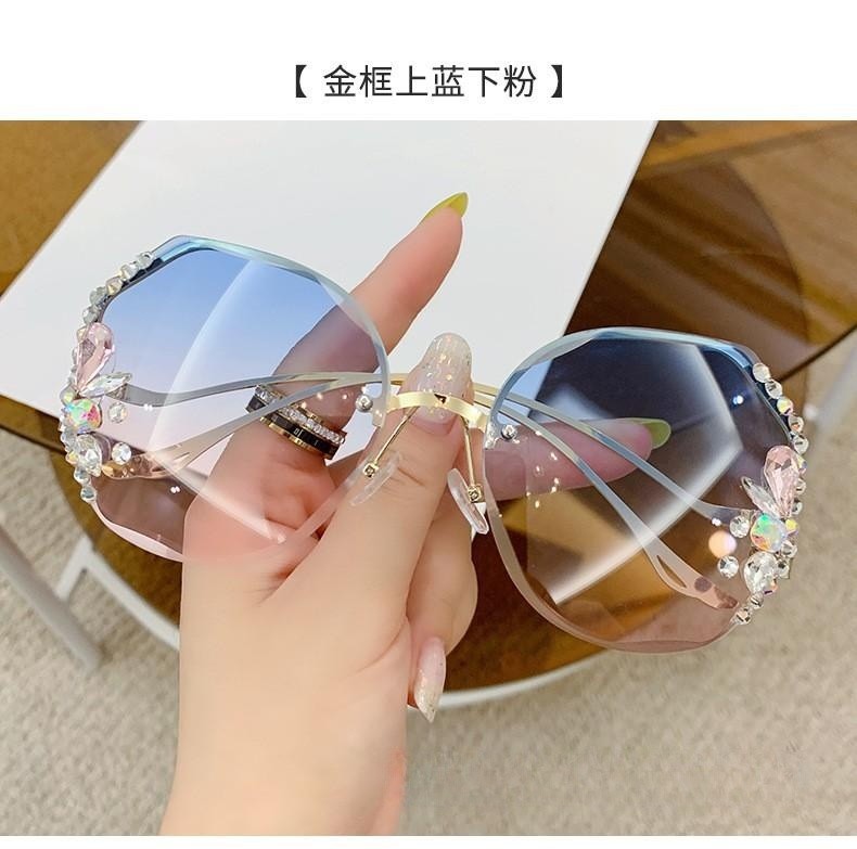 2025 새로운 도착 선글라스 국경 패션 선글라스 프레임리스 트림 인스 타 그램 스타일 슬리밍 사이버 연예인 다이아몬드 박힌 안경