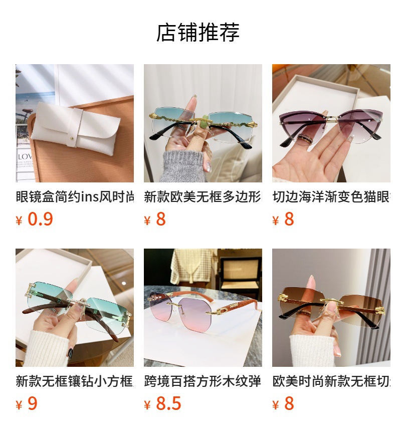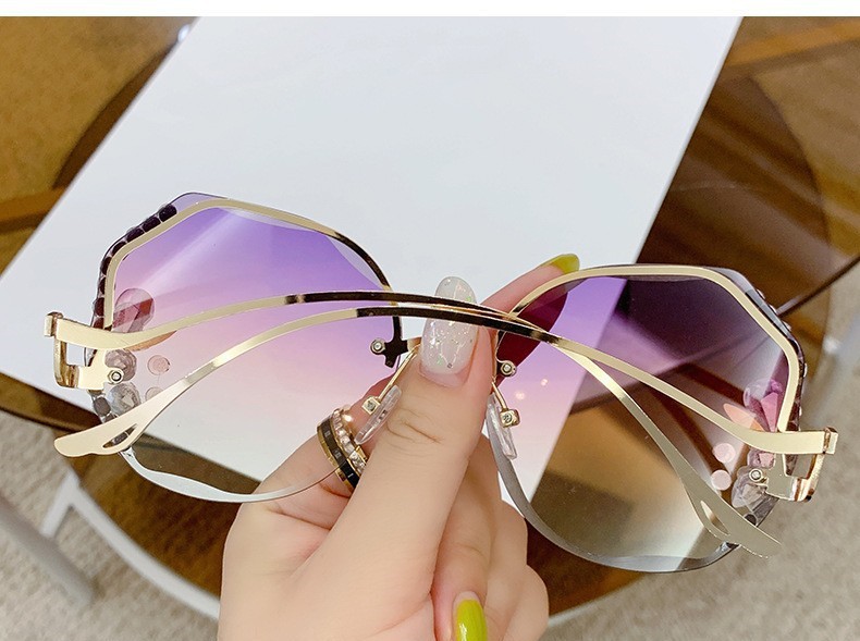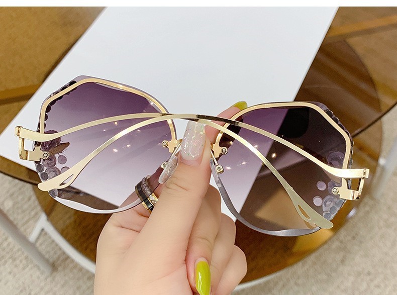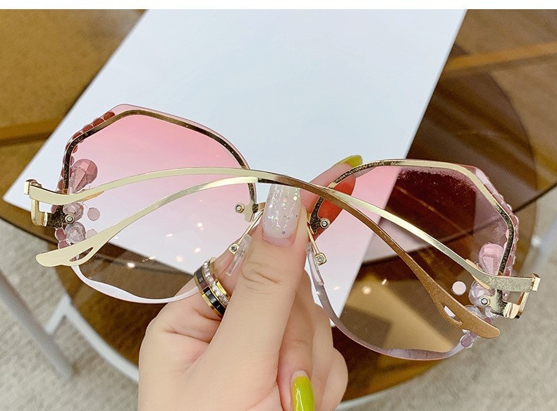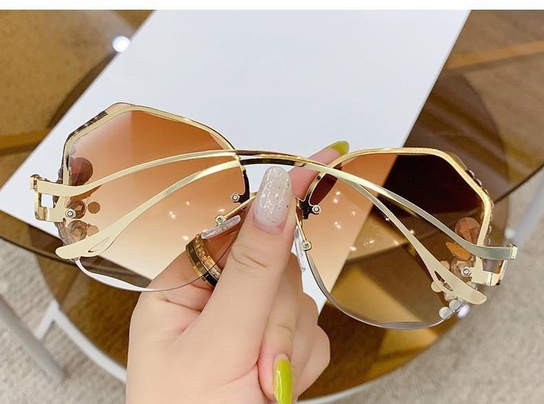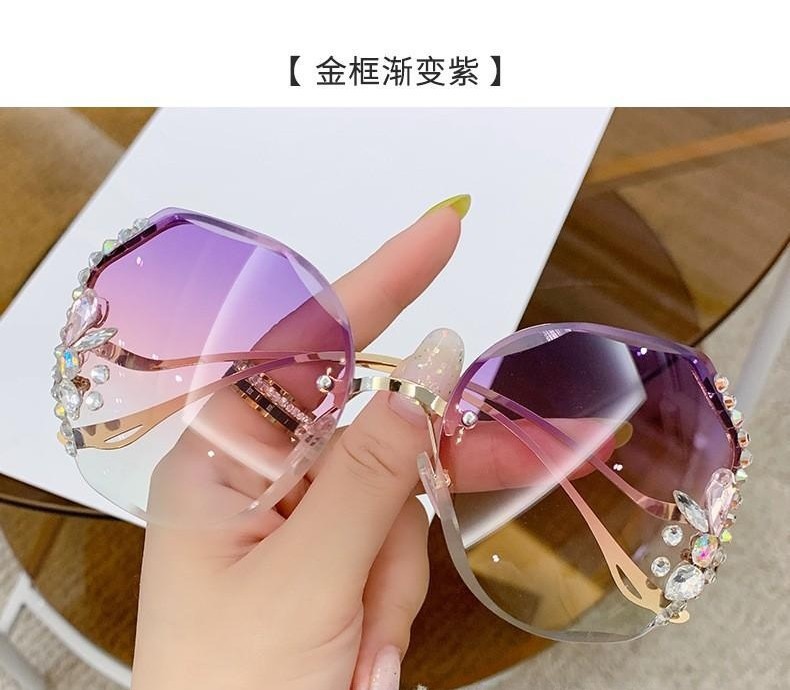 2025 새로운 도착 선글라스 국경 패션 선글라스 프레임리스 트림 인스 타 그램 스타일 슬리밍 사이버 연예인 다이아몬드 박힌 안경스토어 가기