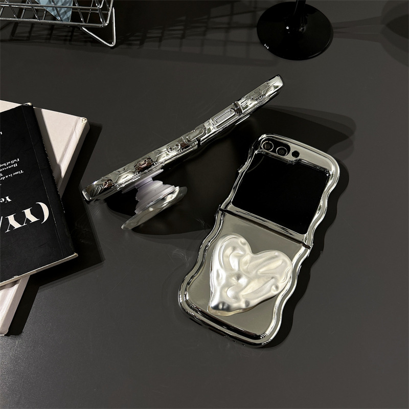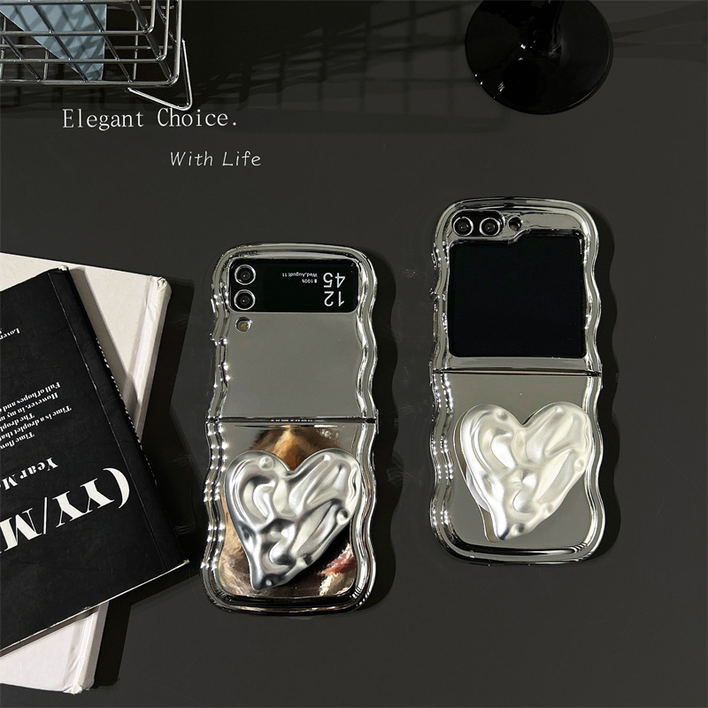 갤럭시 삼성 zflip3/4/5 휴대 전화 케이스 FLIP 6 주름 사랑 브래킷 도금 보호 커버 여성스토어 가기