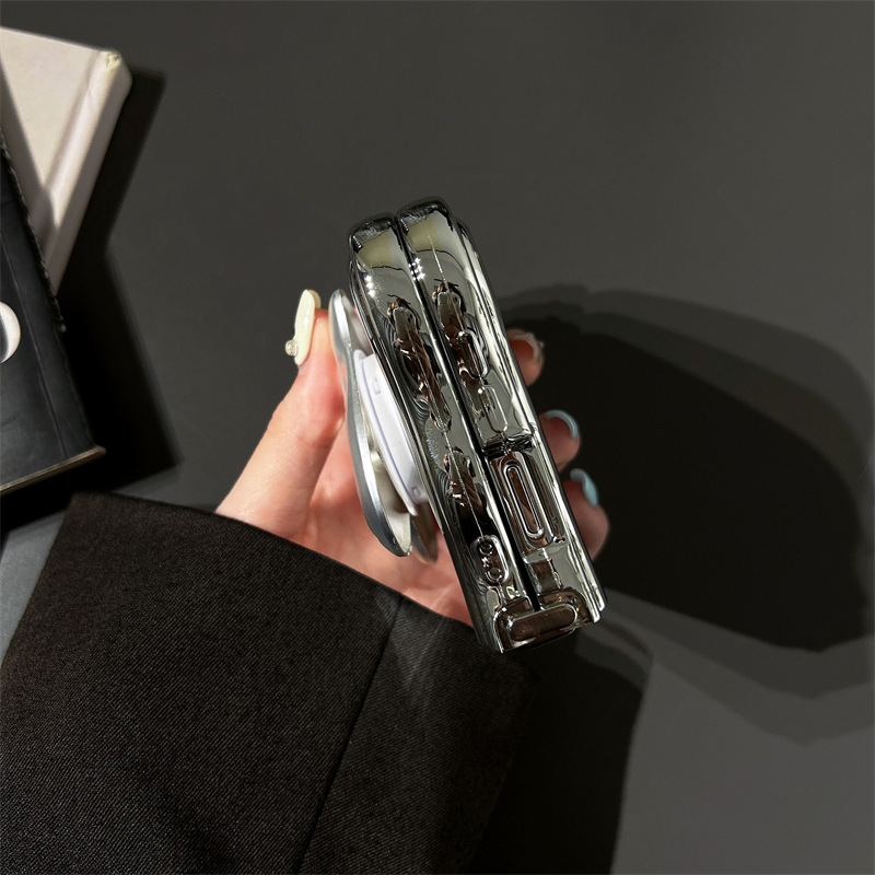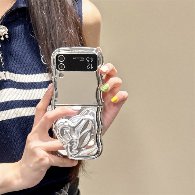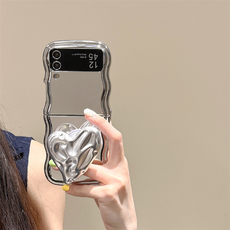 갤럭시 삼성 zflip3/4/5 휴대 전화 케이스 FLIP 6 주름 사랑 브래킷 도금 보호 커버 여성